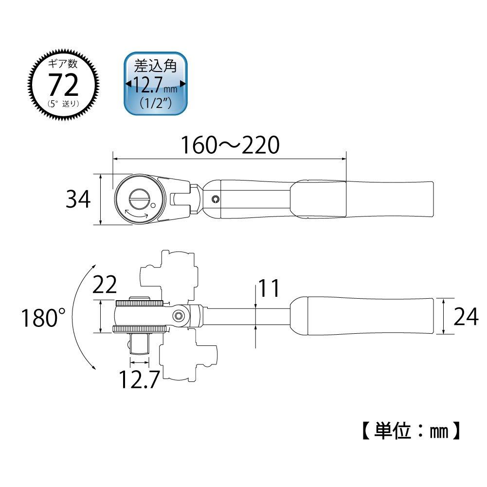 ТОП Промышленный Поворотный Телескопический Трещоточный Высокий Автомобильный Сделано в Японии (ТОП) Рукоятка, привод 12,7 мм, подача 5°, поворот на 180°, крутящий момент, обслуживание, SR-4,