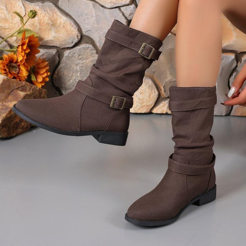 Модные ботильоны из денима с пряжкой большого размера, новинка осени и зимы, квадратный каблук, круглый носок, женские ботильоны