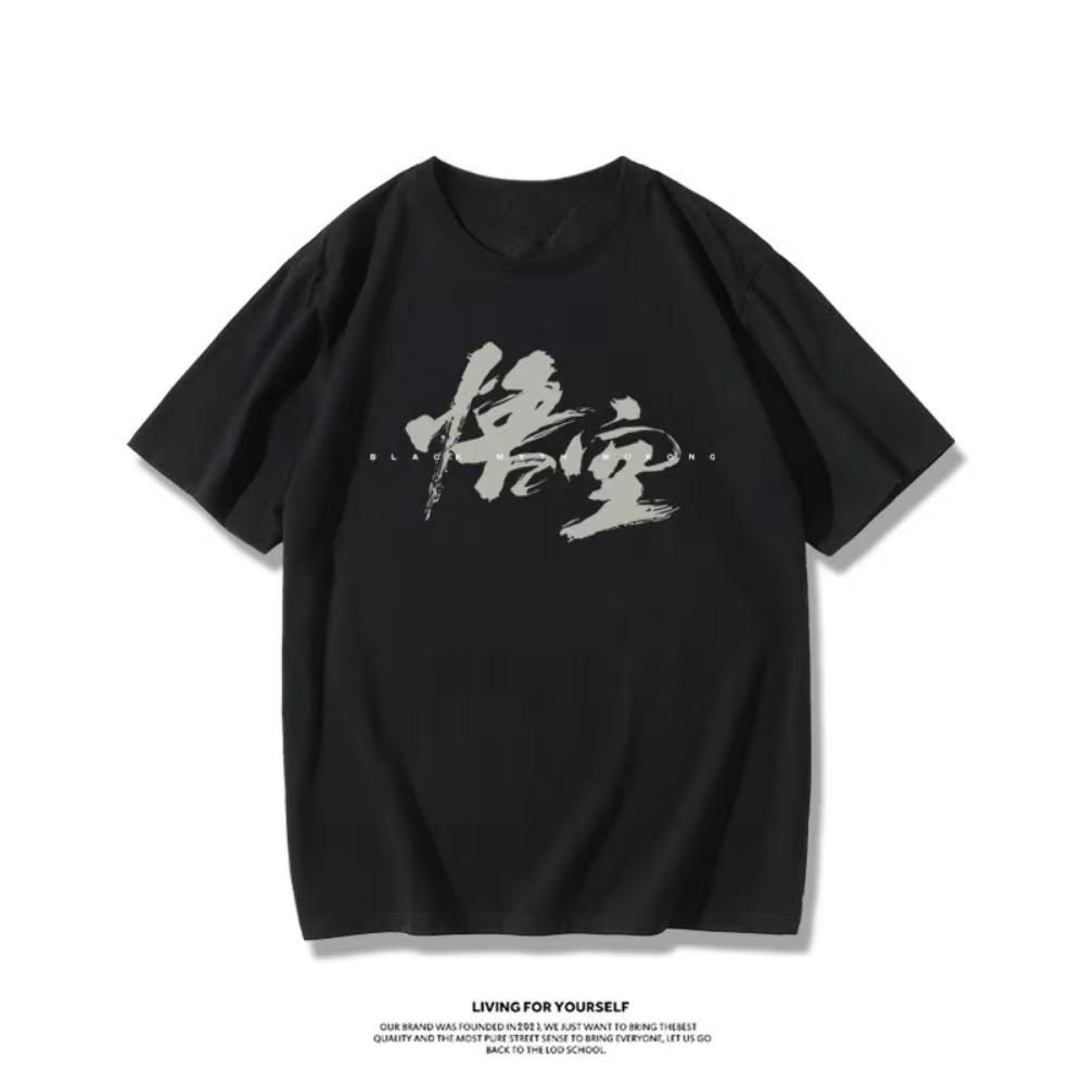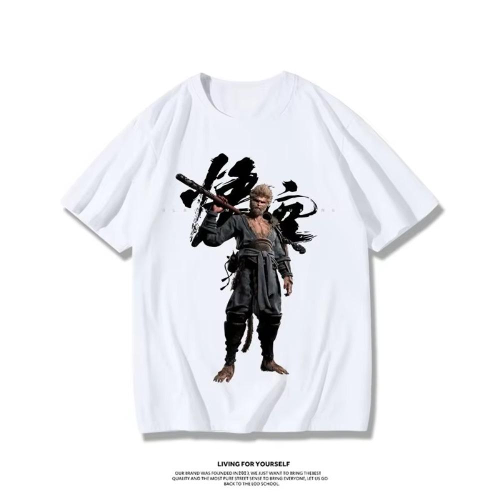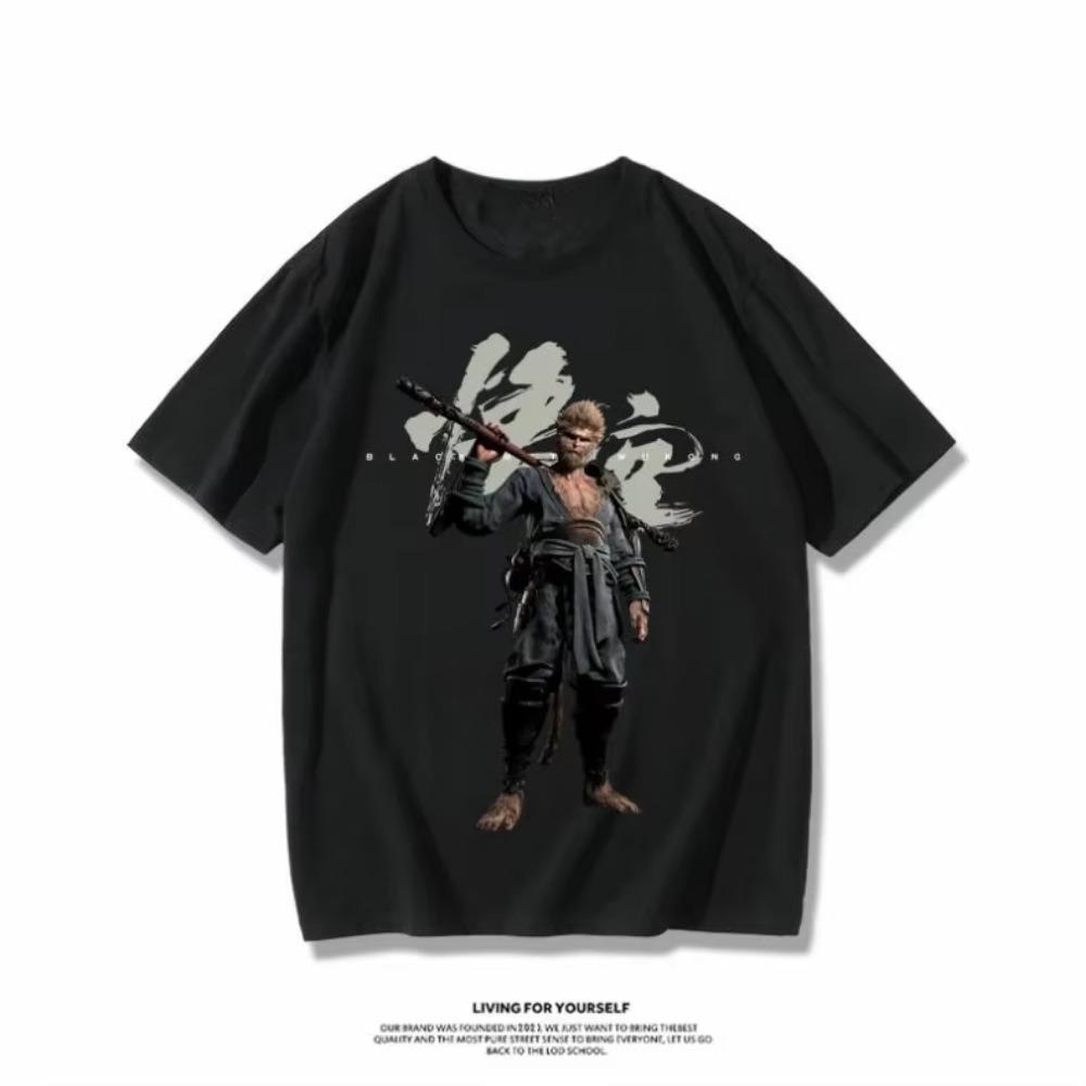 Черная мифическая игра Wukong вокруг футболки с коротким рукавом 2024 года, летняя новая хлопковая свободная американская мужская и женская футболка с коротким рукавом