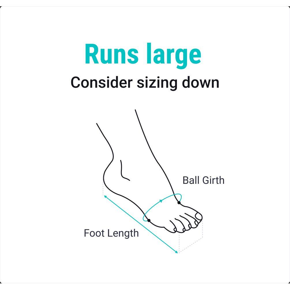 Выберите ближайший больший размер, если длина вашей стопы находится между двумя размерами.