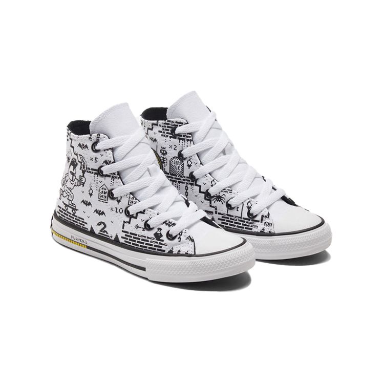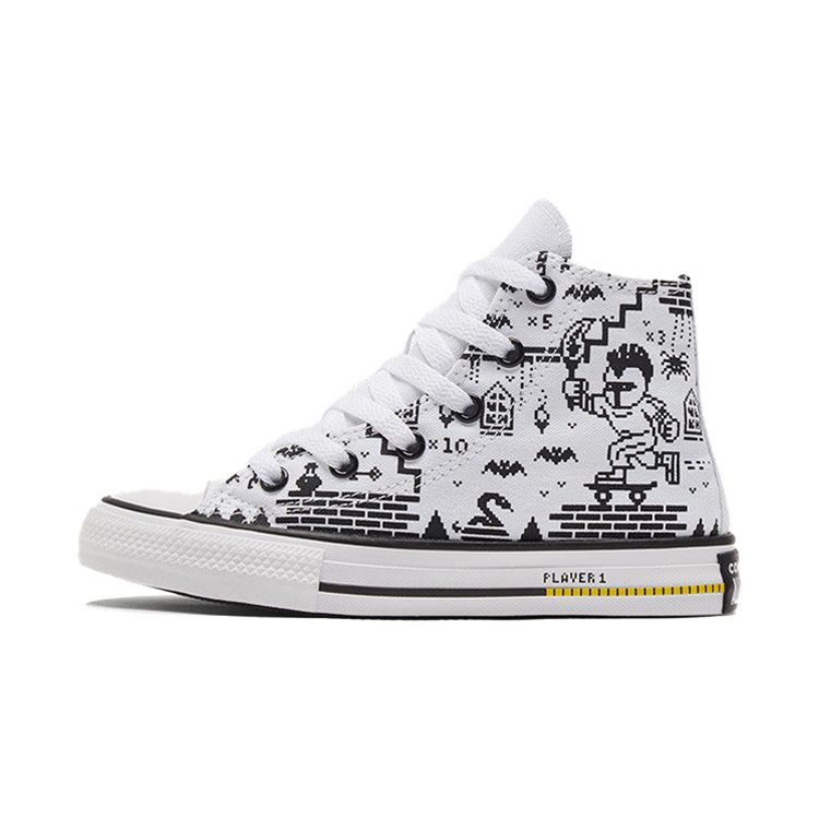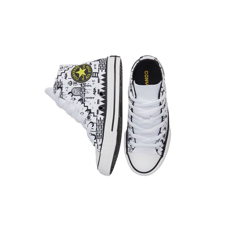Converse Chuck Taylor All Star Полный Принт Прочные Высокие Детские Холщовые Кеды Детские Кроссовки Черно-Белые 670211C