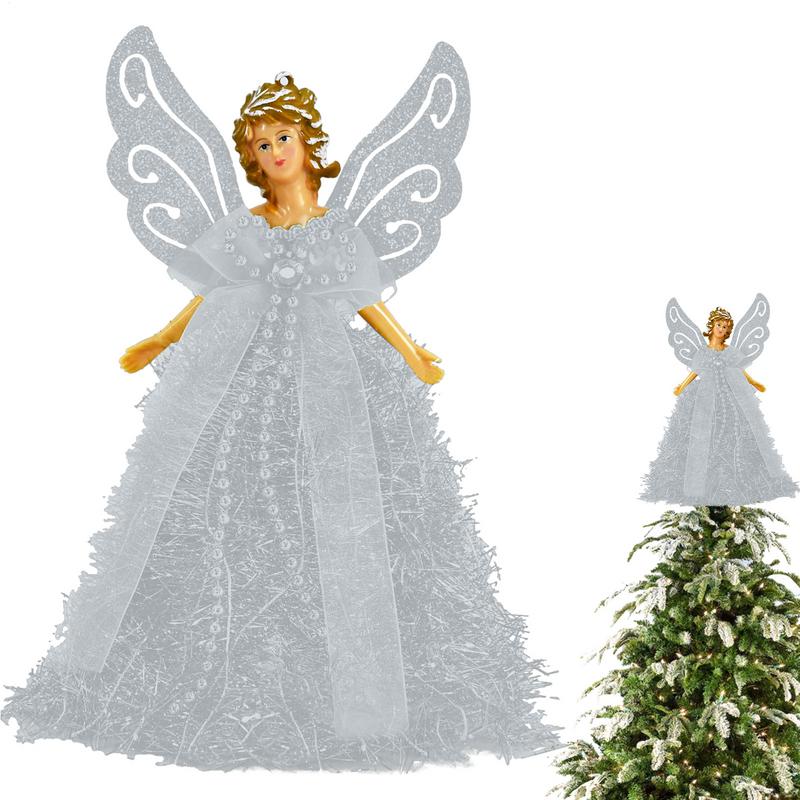 Роскошная звезда-ангел на верхушку рождественской елки в элегантном платье, не требует батареек, идеально подходит для зимнего и новогоднего декора