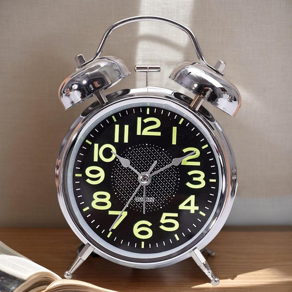 3 Inch Twin Bell Loud Alarm Clock Metal Frame Night Light Clocks Battery Operate Desk Table Alarm Clock For Home and Office