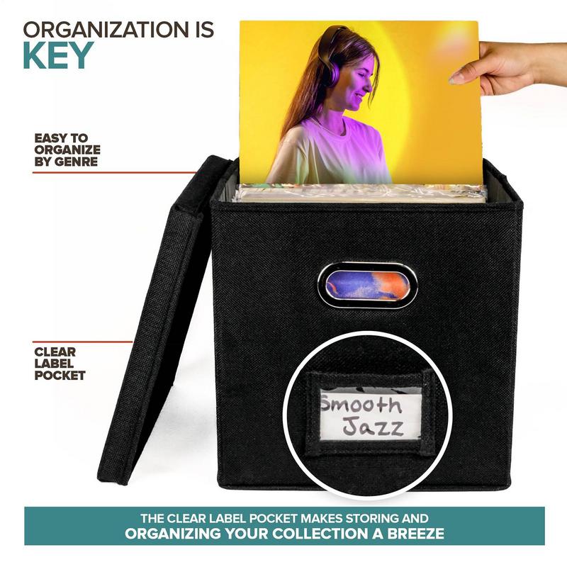 Vinyl Record Storage Box Portables Multi-functional Organizer with Lid for 12 In Albums Records Crate LP Album Storage