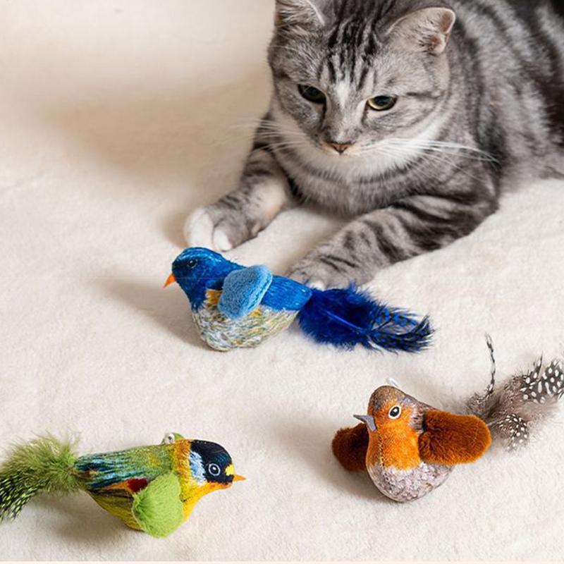 Интерактивная игрушка для кошек, щебечущая птичка, реалистичный щебет, активируется при касании, игрушки для упражнений для котят, милые игрушки с кошачьей мятой для домашних кошек