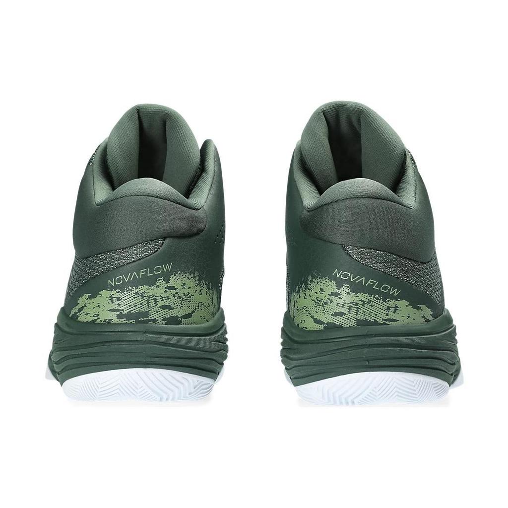 Asics Мужские кроссовки для баскетбола Nova Flow 2 с круглым носком, на шнуровке, с амортизацией, дышащие, средней высоты, зеленые, 1063A071-300