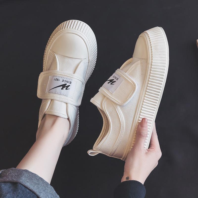 Весенние парусиновые туфли на толстой подошве с пряжкой, женские, на липучке, студенческие, туфли-печенье, ленивые, в стиле ретро, классические, универсальные, маленькие белые туфли