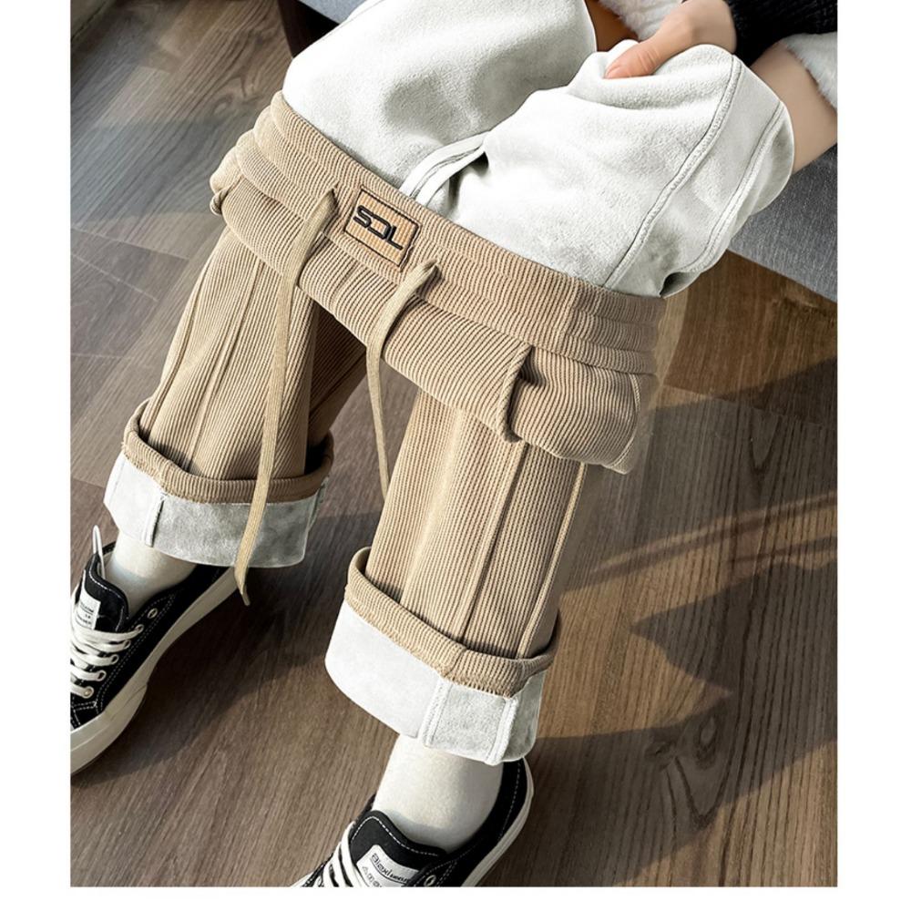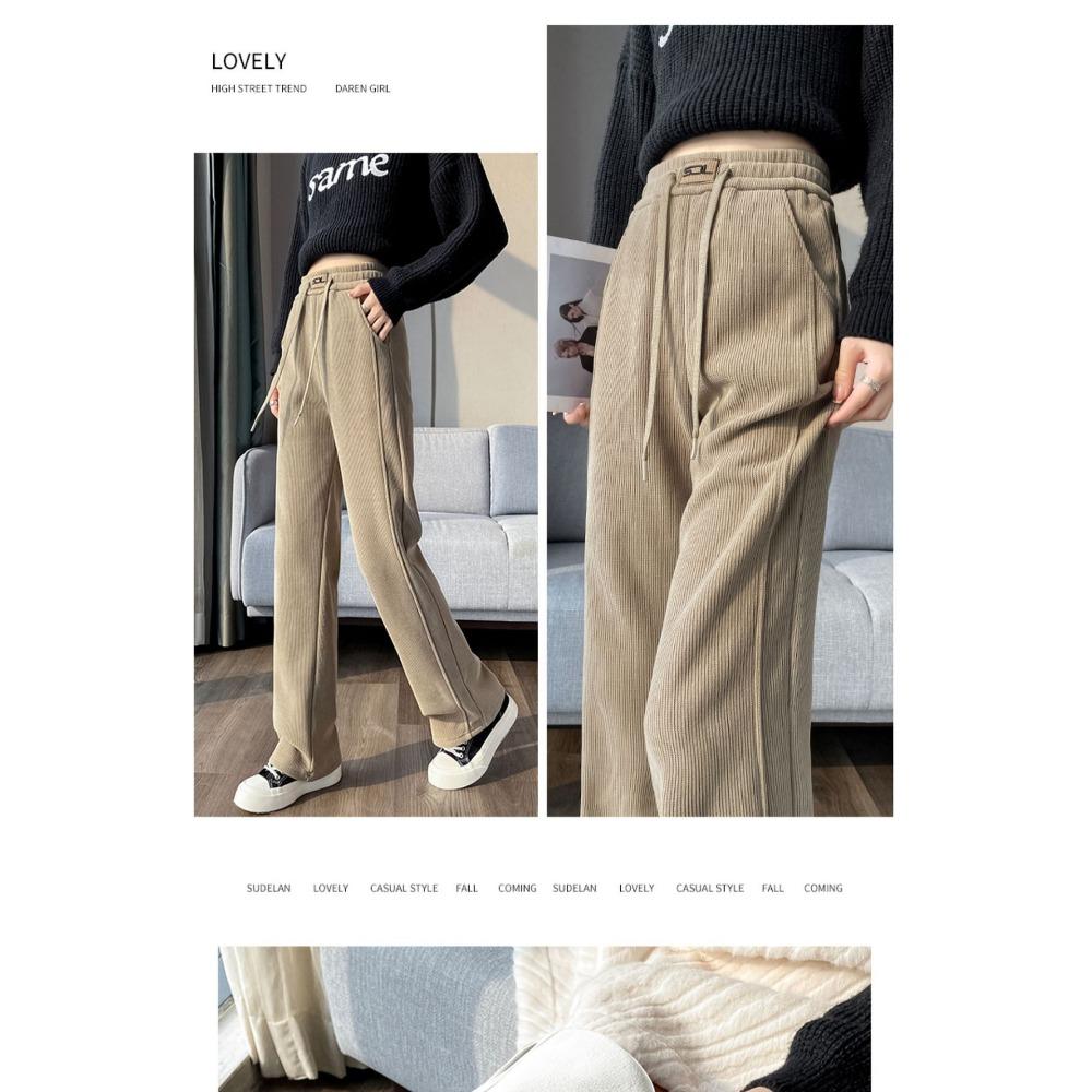 Очень толстые утепленные широкие брюки женские, осень и зима повседневные свободные высокие прямые брюки