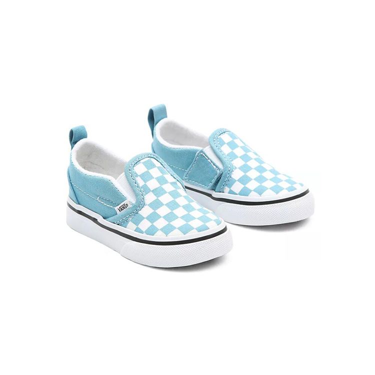 Vans Нескользящие Прочные Дышащие Низкие Кеды для Скейтбординга Бело-Синяя Клетка Детские Кроссовки VN0A348830Y