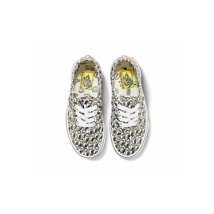 Vans Mooneyes X Authentic Casual Низкие Кеды для Скейтбординга Детские Кроссовки Черно-Бело-Желтые VN0A3UIVYB2