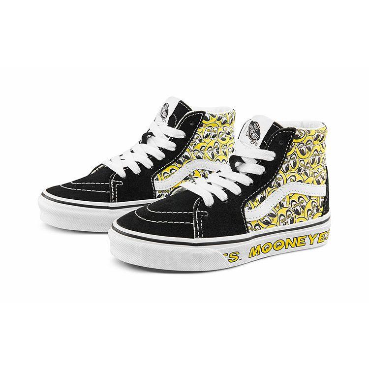 Vans Mooneyes X Sk8 Casual Высокие кеды для скейтбординга Детские кроссовки Черный Белый Желтый VN0A5DXNY23