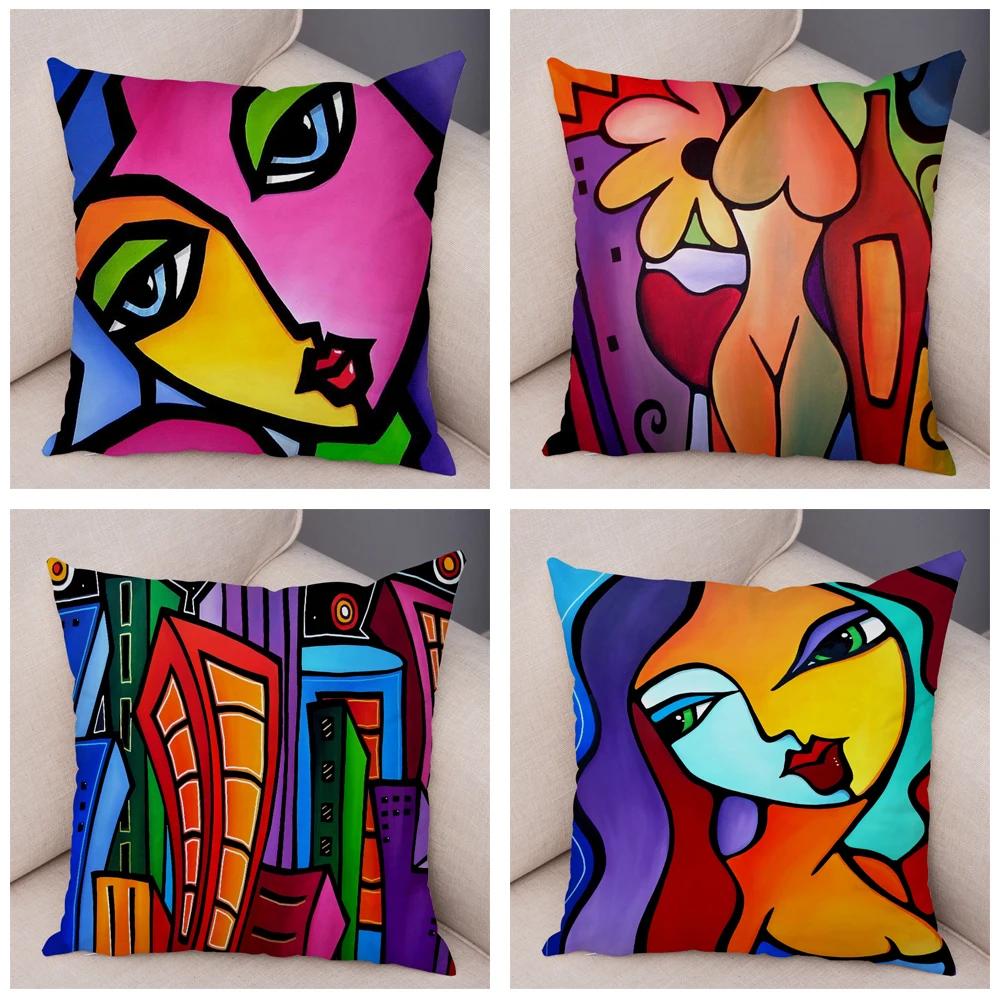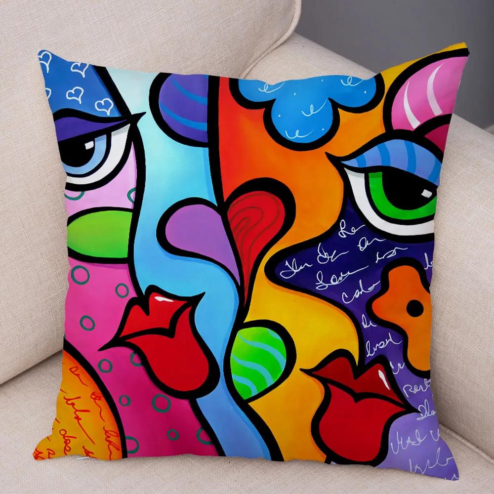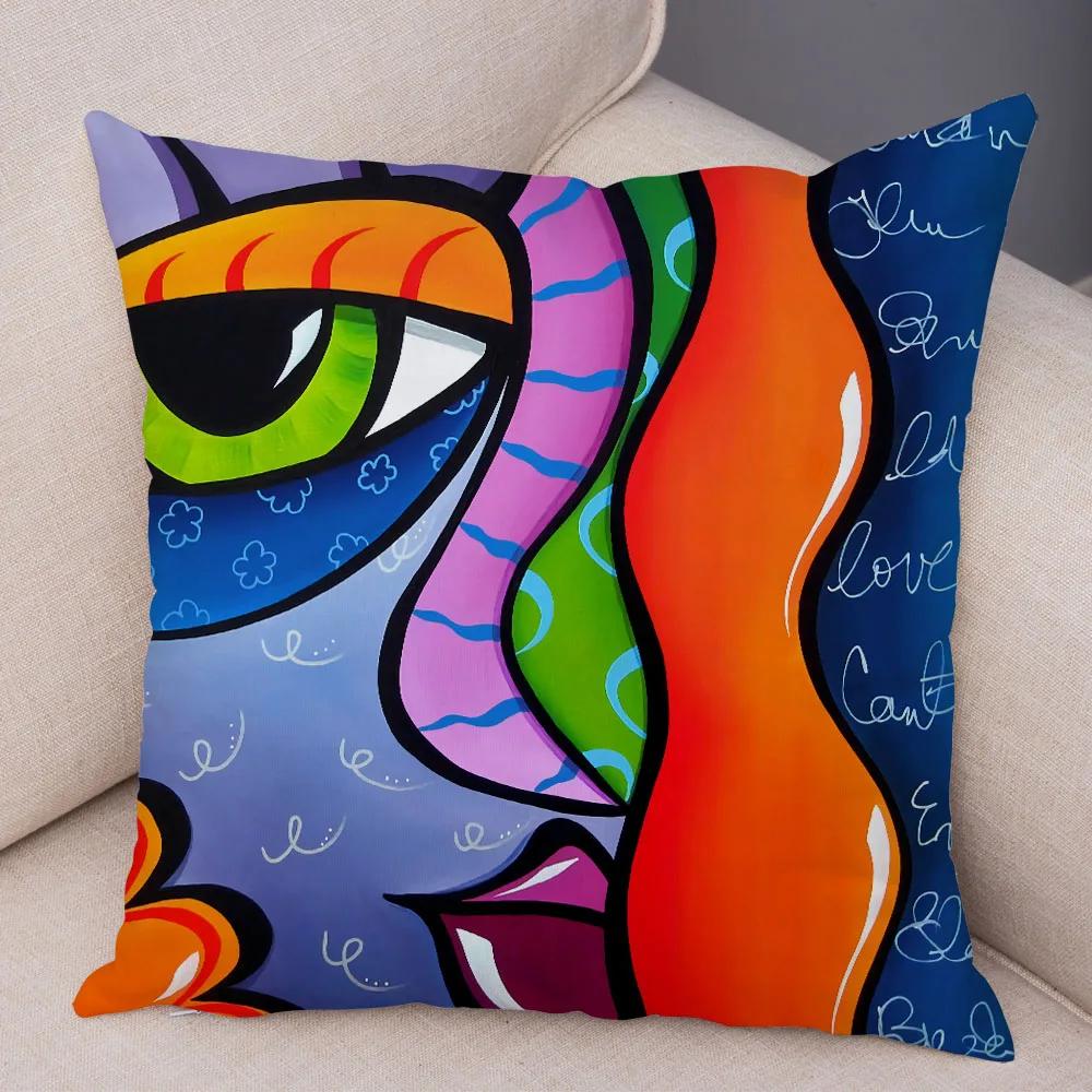 Абстрактная живопись, украшение на подушку, скандинавский стиль, красочный мультяшный рисунок, наволочка для девушки, диван для дома
