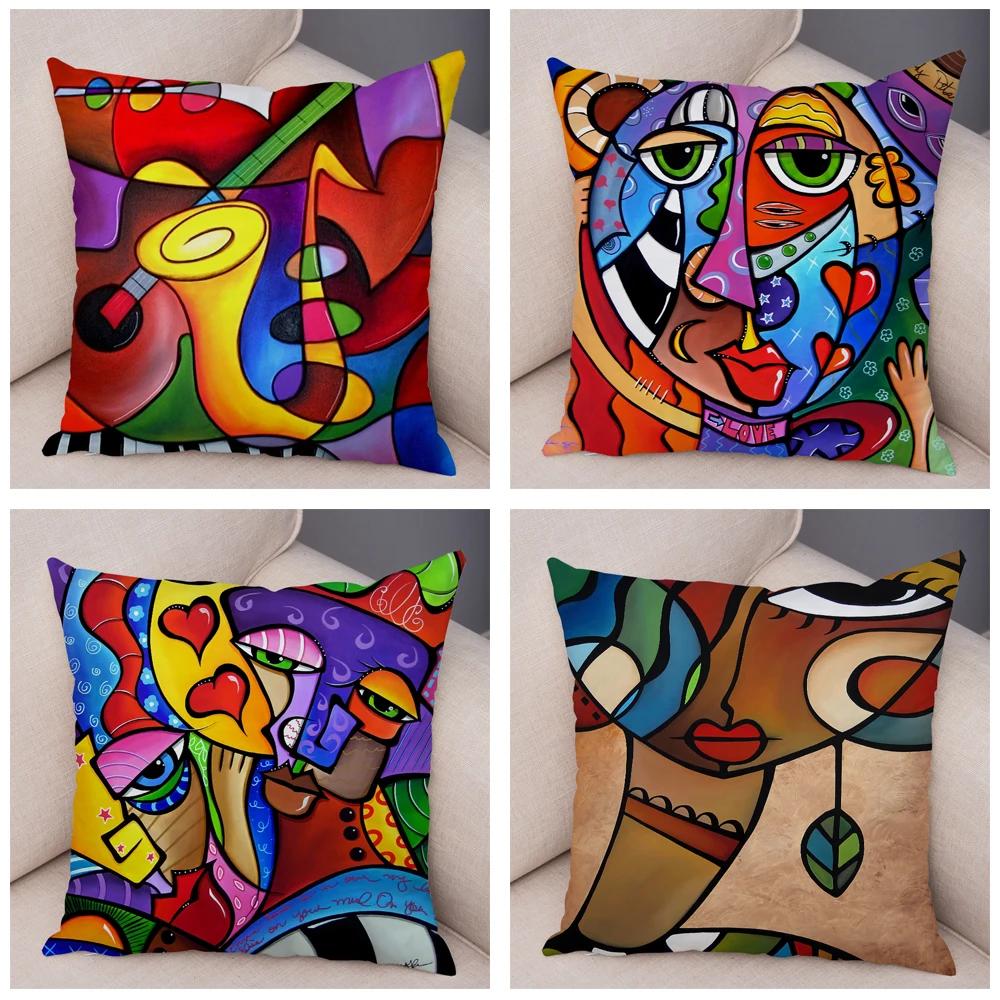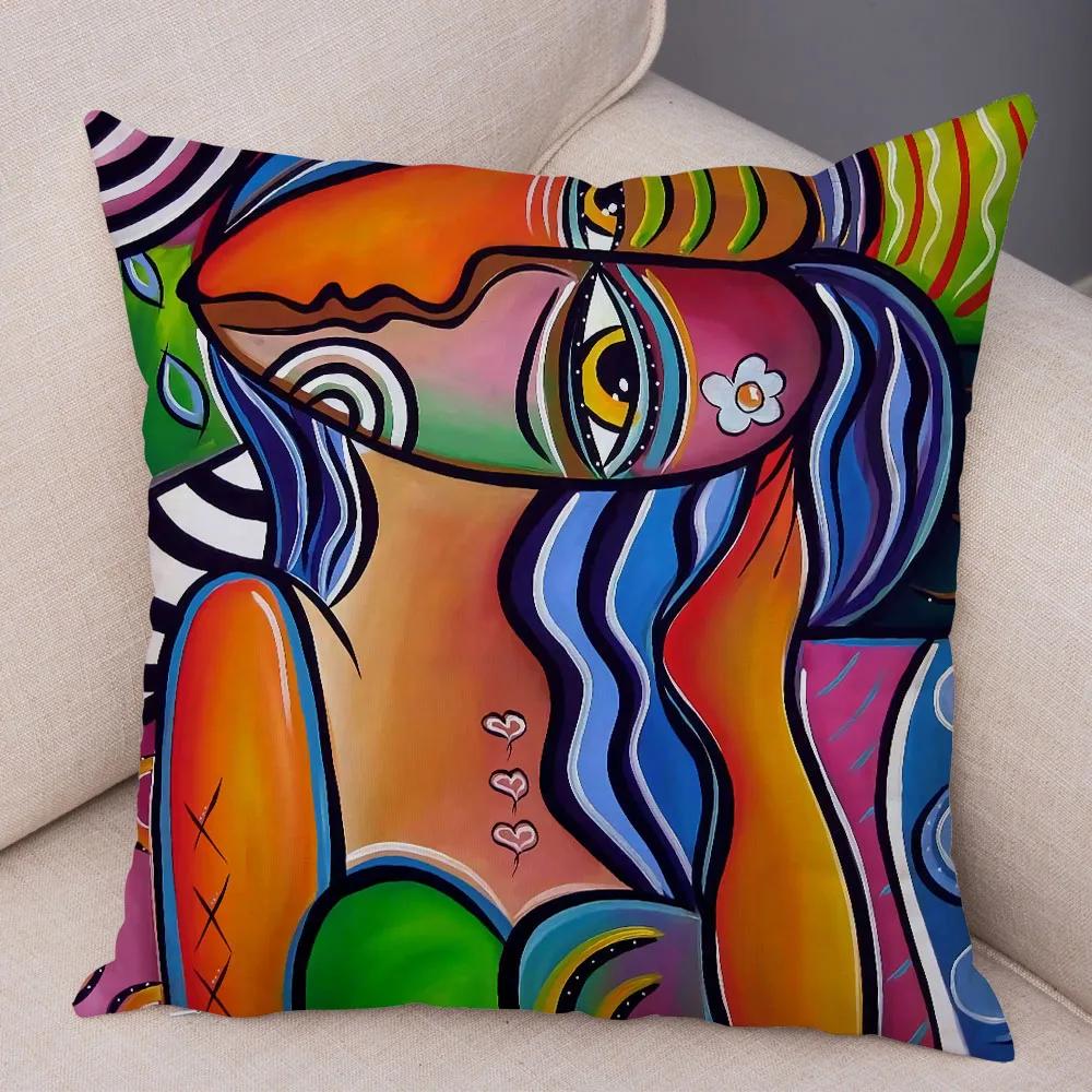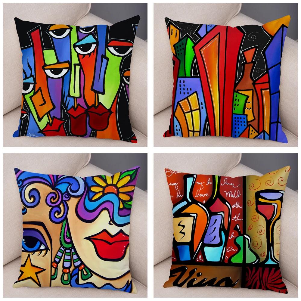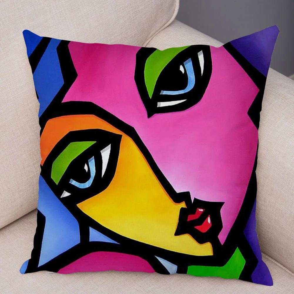 Абстрактная живопись, украшение на подушку, скандинавский стиль, красочный мультяшный рисунок, наволочка для девушки, диван для дома