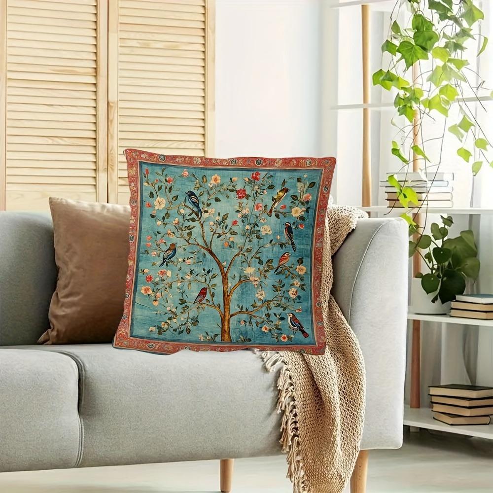Изысканная наволочка с цветочным и птичьим принтом для прикосновения к красоте природы Наволочка для диванной подушки, украшение для дома, 2D-печать