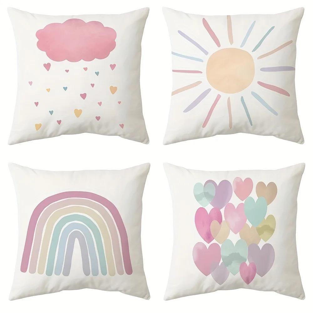 Мультяшная наволочка с принтом радуги, звезды и солнца, чехол для подушки на диван для гостиной, домашнее украшение комнаты без наполнителя