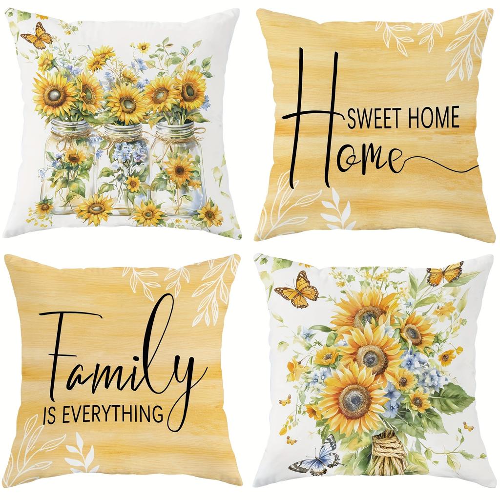 Sunshine-inspired pillow cover: bright sunflowers, smart butterflies and warm family words, sofa cushion cover
