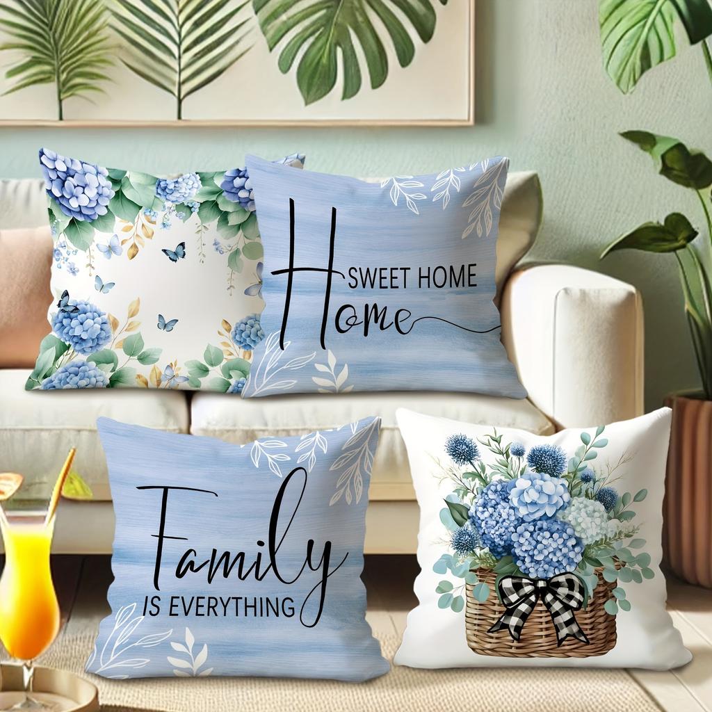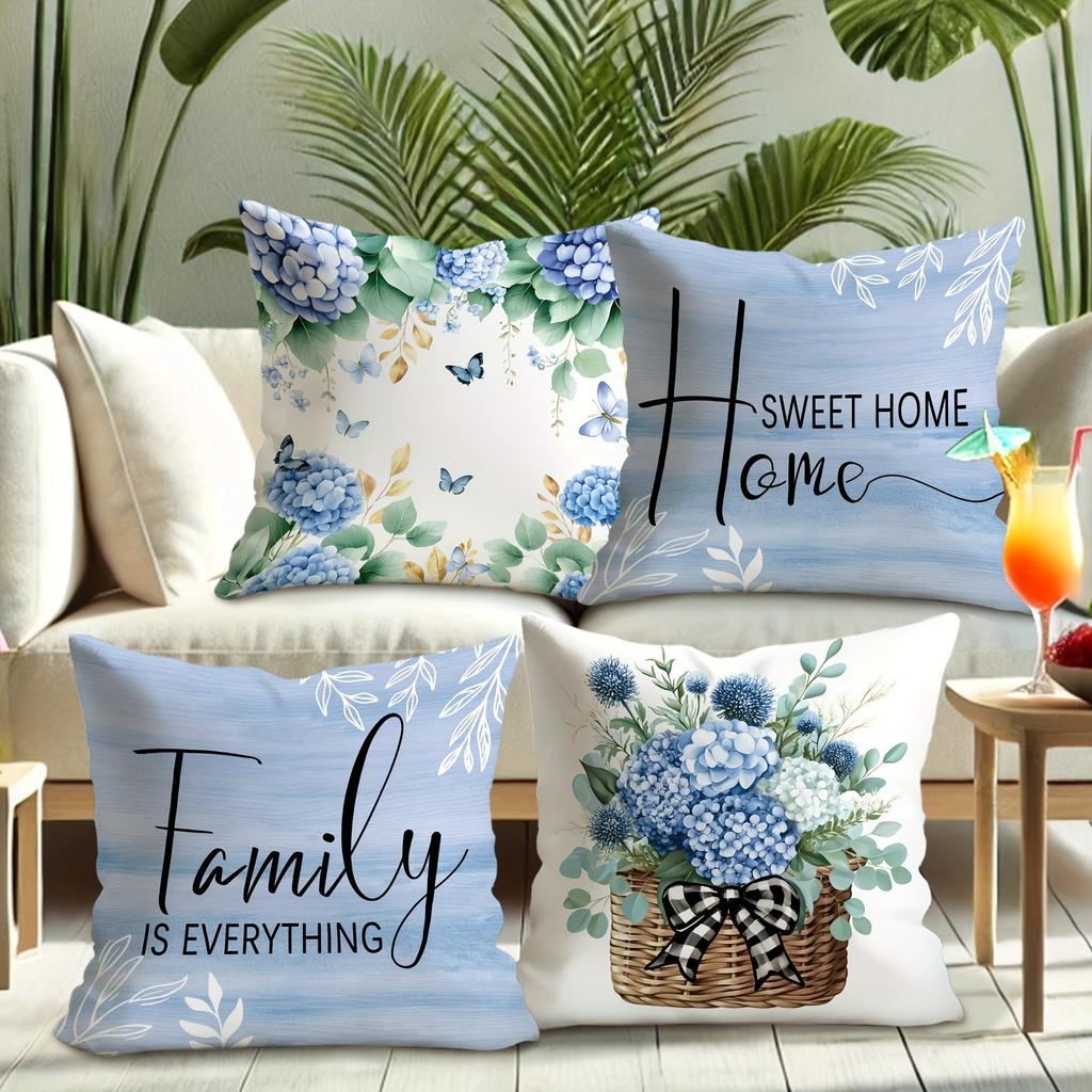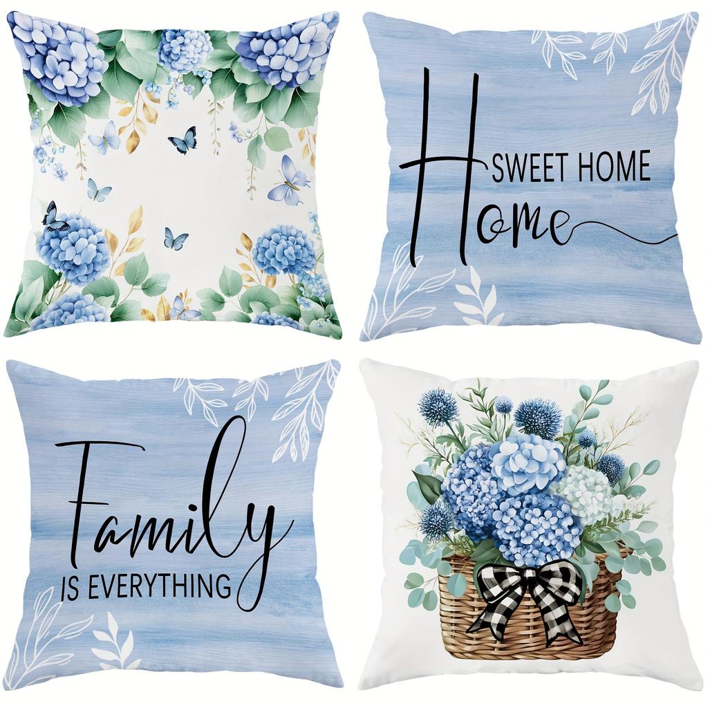 Hydrangea - themed Cozy Pillow Cover: Delicate Blooms, Butterflies and Heartfelt Quotes, Sofa Cushion Cover, Bedroom Room Decor