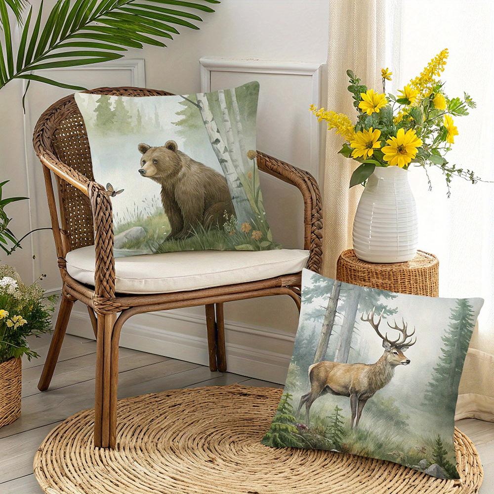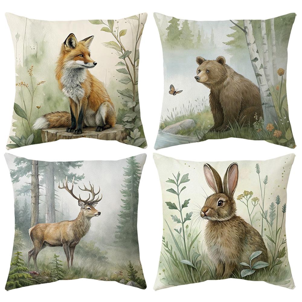 Декоративные наволочки с принтами дикой природы: Дизайн Лиса, Медведь, Олень и Кролик Чехол на подушку для дивана украшение для дома и комнаты