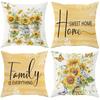 Радостная наволочка в акварельном стиле с подсолнухом, солнцем и трогательными семейными и домашними мотивами, наволочка для диванной подушки