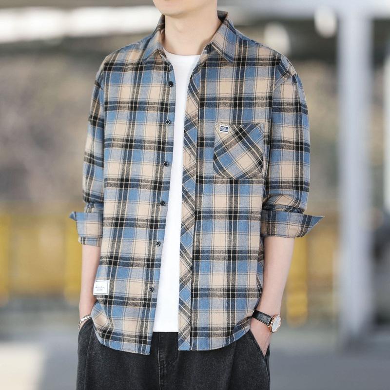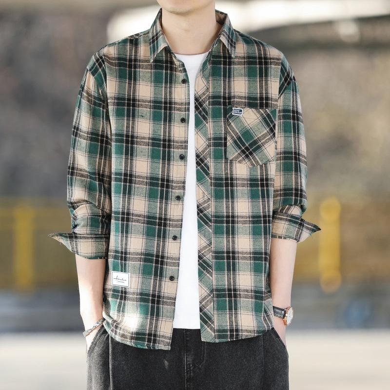 Клетчатая рубашка мужская свободная рубашка с лацканами, повседневная рубашка с длинными рукавами, куртка