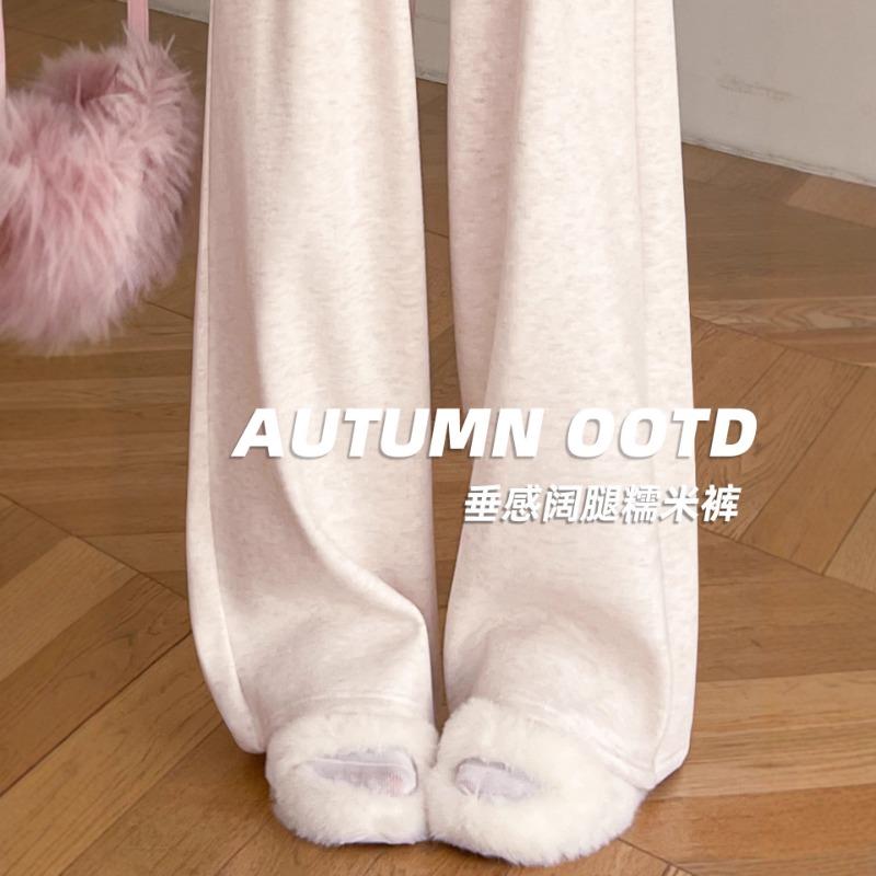 Белые брюки из клейкого риса женские весенне-осенние новые с высокой талией, драпирующиеся, повседневные прямые, слегка свободные широкие брюки