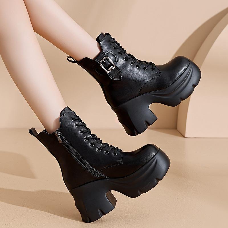 Ботинки мартин на толстой подошве короткие кожаные ботинки женские новые ботильоны челси на высоком каблуке короткие ботинки весенне-осенние одинарные ботинки