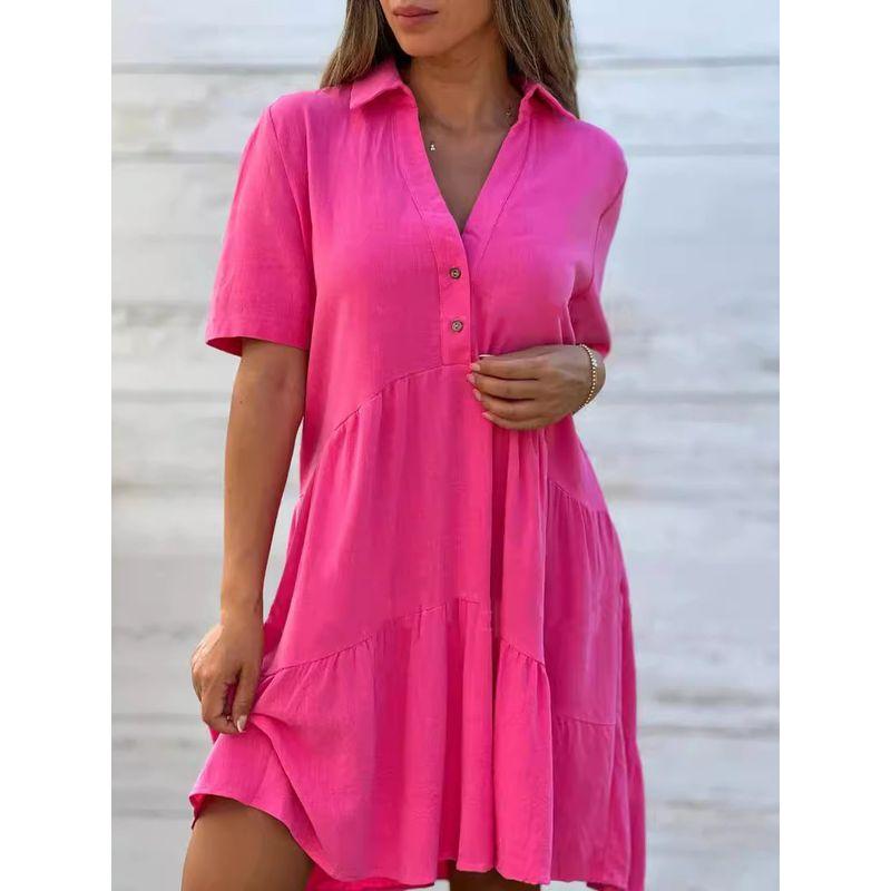 Loose Solid Color Lapel Casual Dress Loose Solid Color Polo Collar Casual Dress
