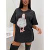 Western Style Distressed Washed Print Cotton T-shirt Top Loose Printed Cotton T-shirt Top