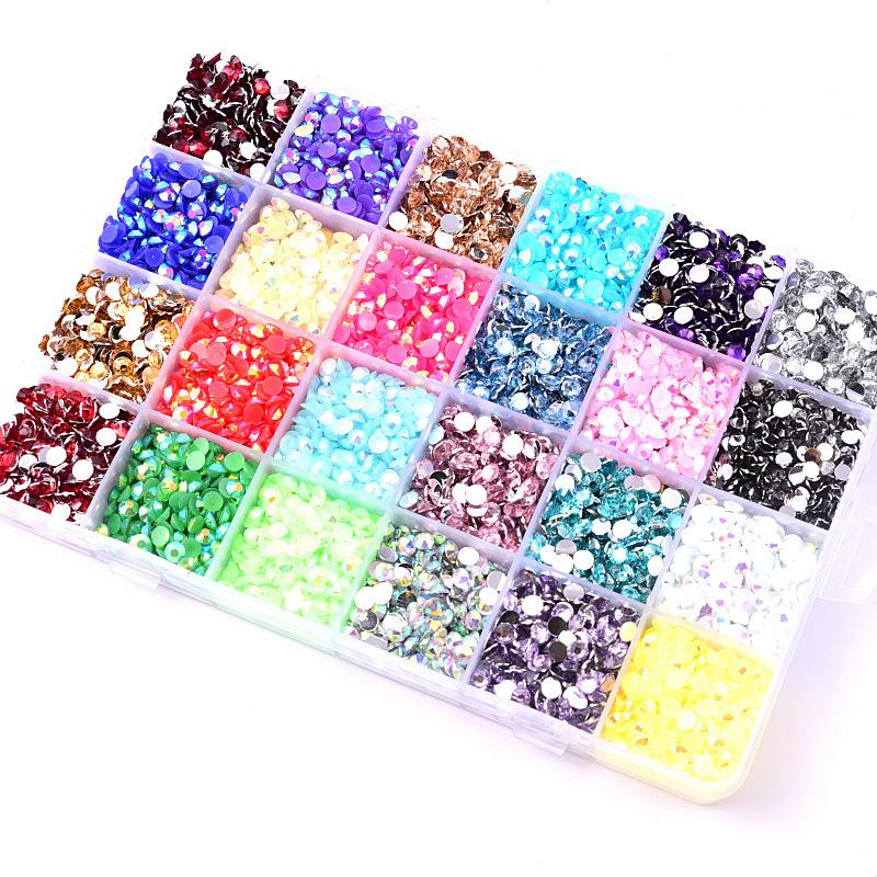 24-ячеечная смоляная коробка для алмазов с плоским дном, набор с посеребренным дном, сделай сам, насадка для ногтей, красота, чехол для мобильного телефона, ювелирные аксессуары