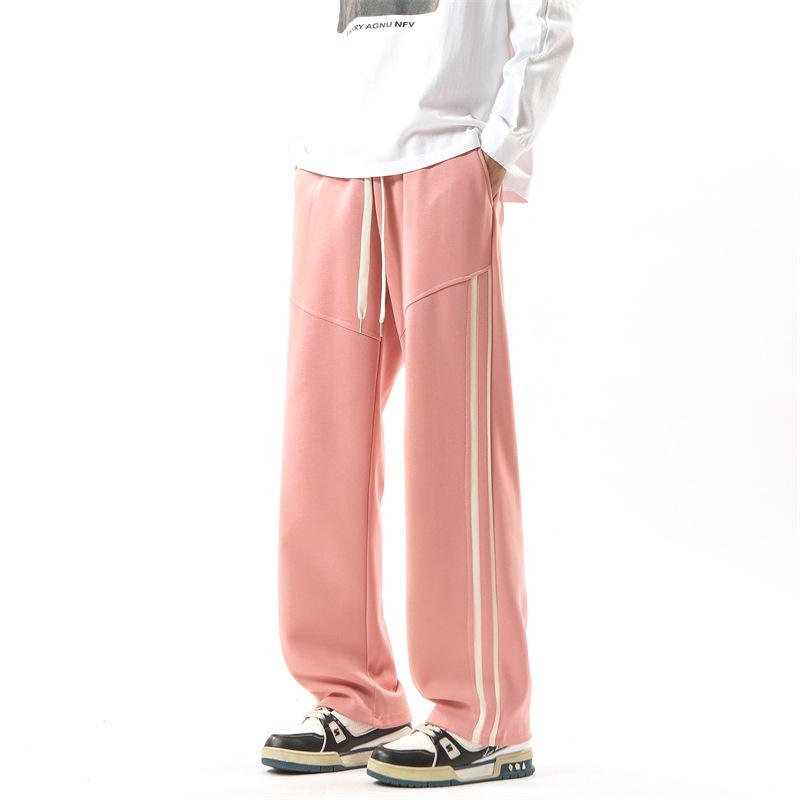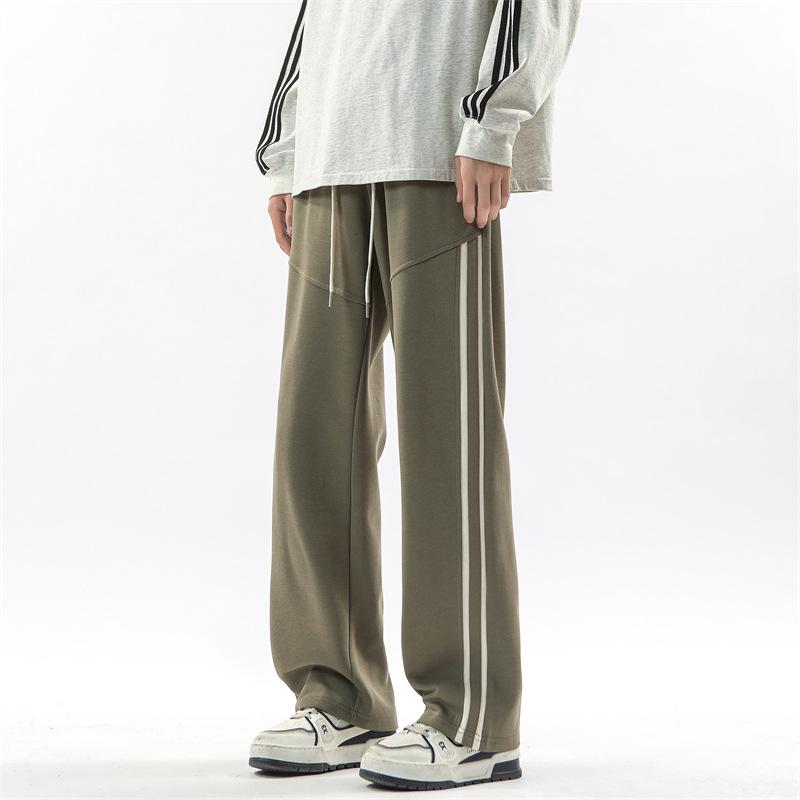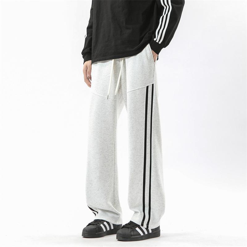 Весенне-осенние новые длинные брюки мужские свободные и универсальные на кулиске прямые с двумя лампасами спортивные драпированные спортивные штаны мужские
