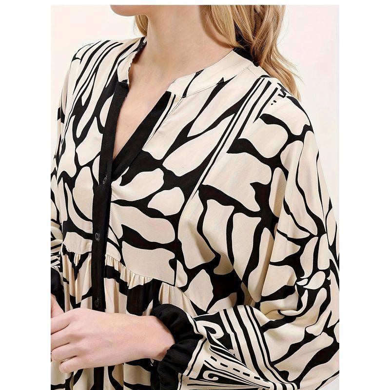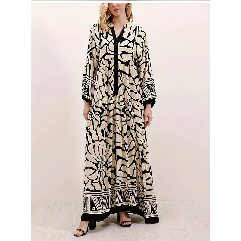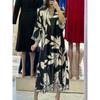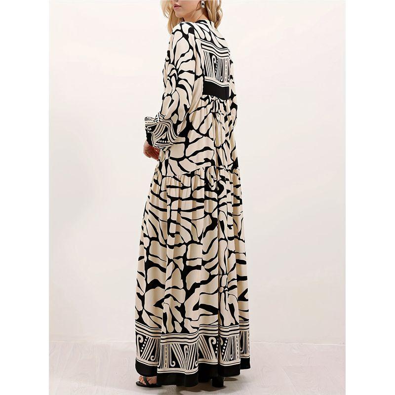 Western Style New Fashion Casual Loose Print Long sleeve V-neck Dress Printed V-neck Dress