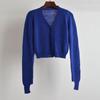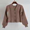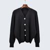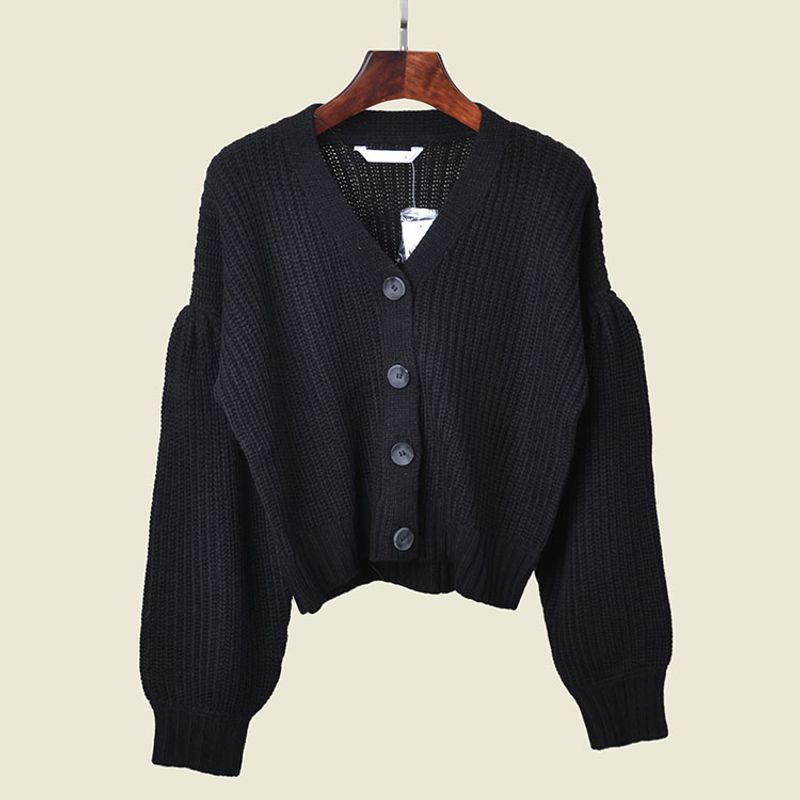 Retro V-neck Puff Sleeve Autumn and Winter Fashionable Jacket Women's Minimalist All-Match Slimming Sense of Design Foreign Trade Sweater Cardigan