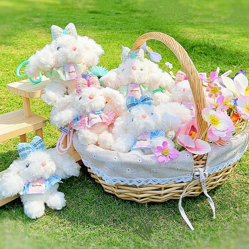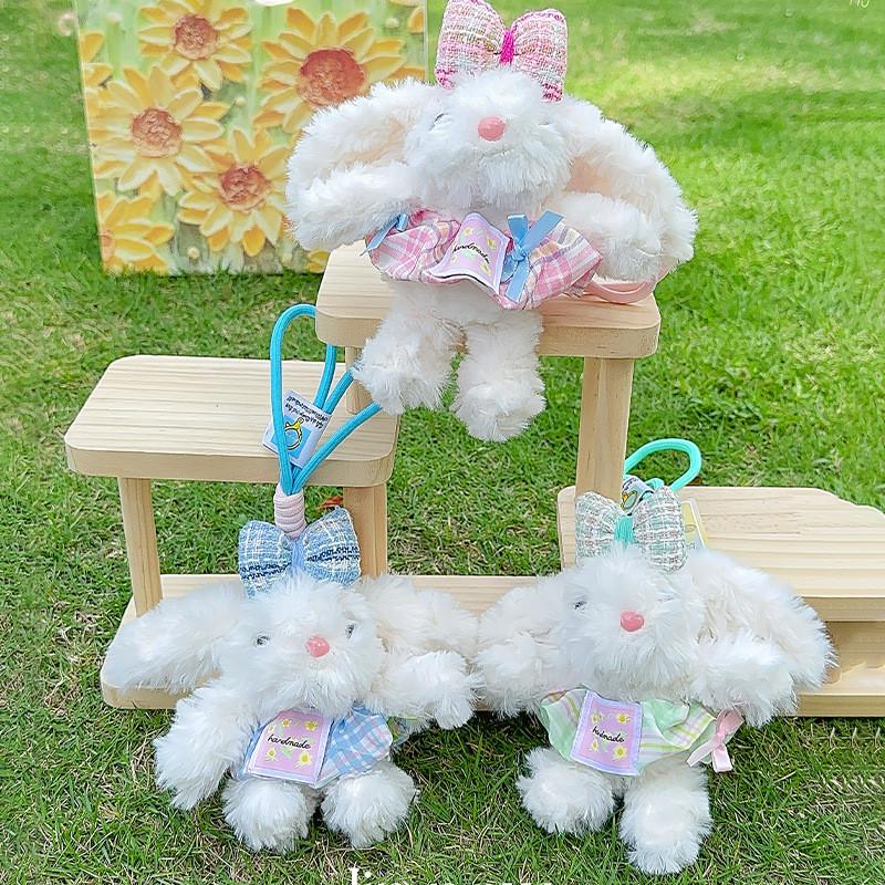 Плюшевый брелок в виде кролика, свисающее платье в клетку, подвеска для рюкзака, милый детский подарок