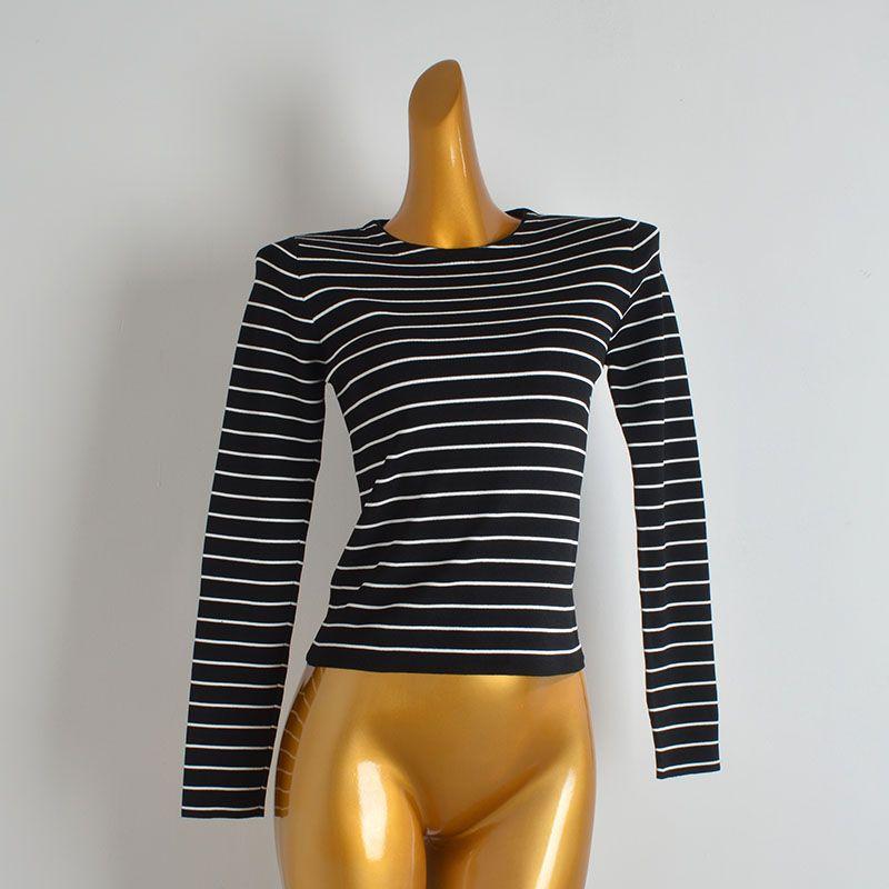 Export Cut Label Contrast Color Stripes round Neck Pullover Knitwear Women's Clothing Fall/Winter Slim Slimming and Short Long Sleeves Bottoming Shirt — купить товар онлайн с бесплатной доставкой до всему миру!
