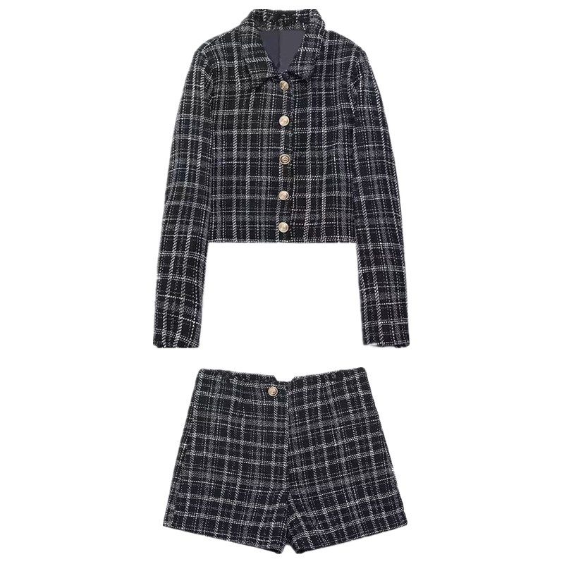 Autumn and Winter European and American Style Plaid Texture Coat Short Suit