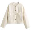 Fashion Style 2023 Fall and Winter New Arrival Female Classic Style Temperament Wild Creamy-white Drop-Shoulder Sleeve Texture Short Version Outwear