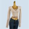 UJIA Wooden Ear Spring Color Matching Long Sleeves Thin Knitwear High Waist Cropped Cardigan — купить товар онлайн с бесплатной доставкой до всему миру!
