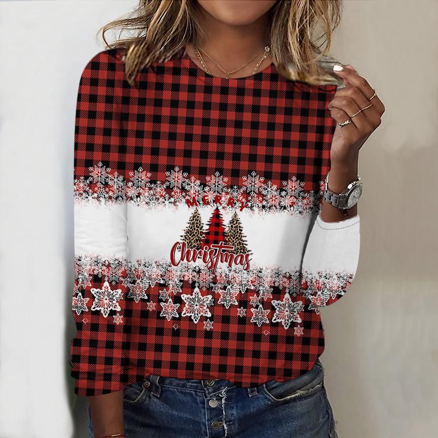 Женский новый повседневный топ с круглым вырезом и длинным рукавом на осень-зиму 2025 года с 3D-рождественским узором. Идеальный подарок на Хэллоуин и Рождество.