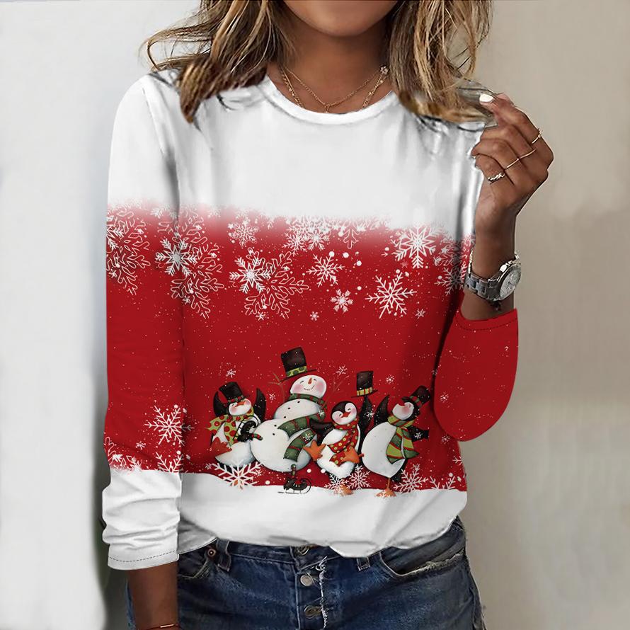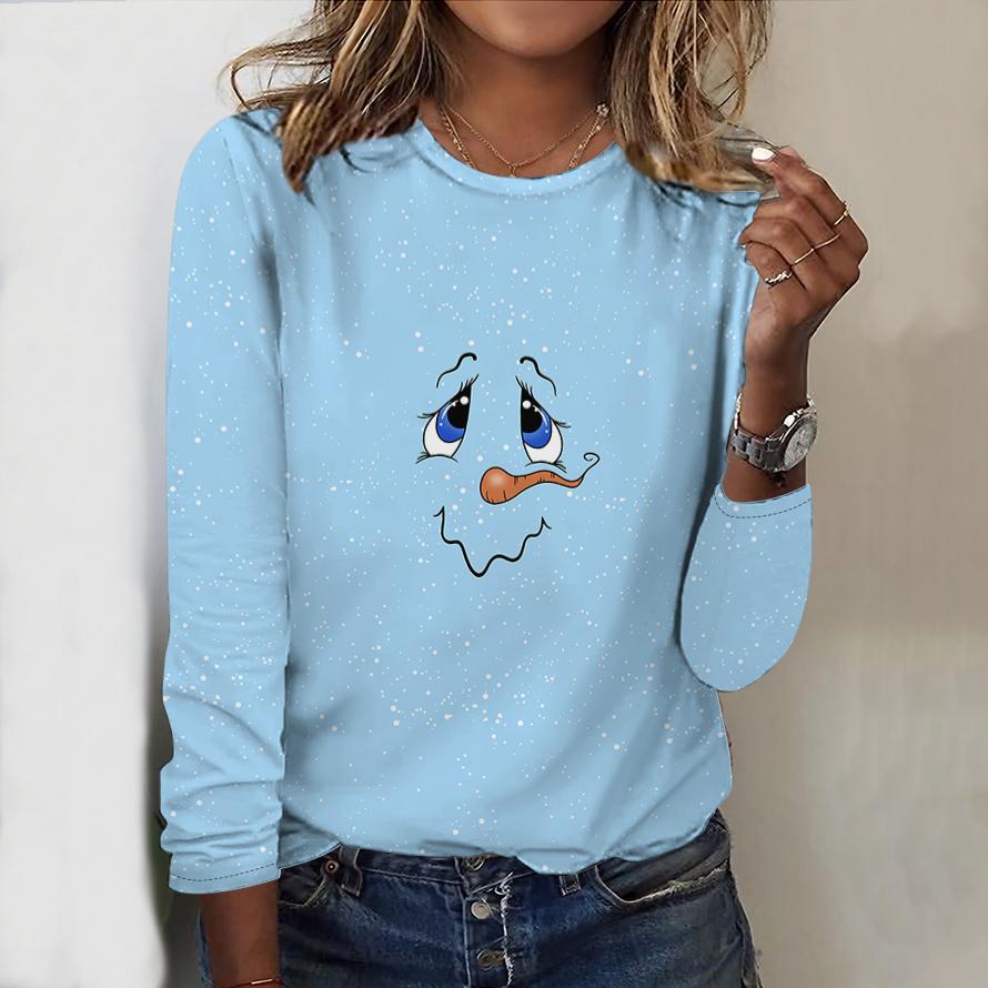 Женский новый повседневный топ с круглым вырезом и длинным рукавом на осень-зиму 2025 года с 3D-рождественским узором. Идеальный подарок на Хэллоуин и Рождество.