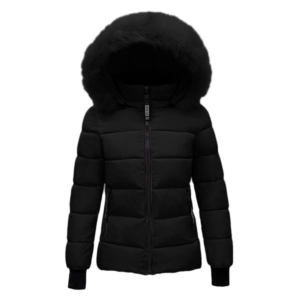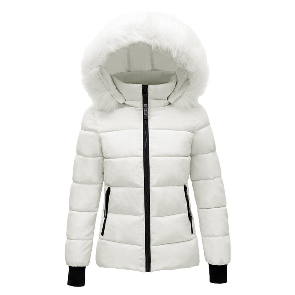 Женское зимнее однотонное пуховое пальто больших размеров с длинным рукавом и карманом на молнии