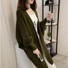 Осень и Зима Женский Свитер Кардиган Куртка Средней Длины Свободного Покроя Повседневный с Рукавами Летучая Мышь Необычного Дизайна