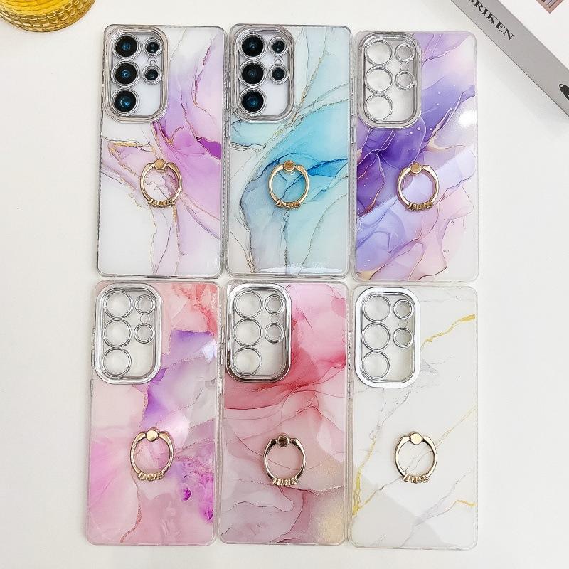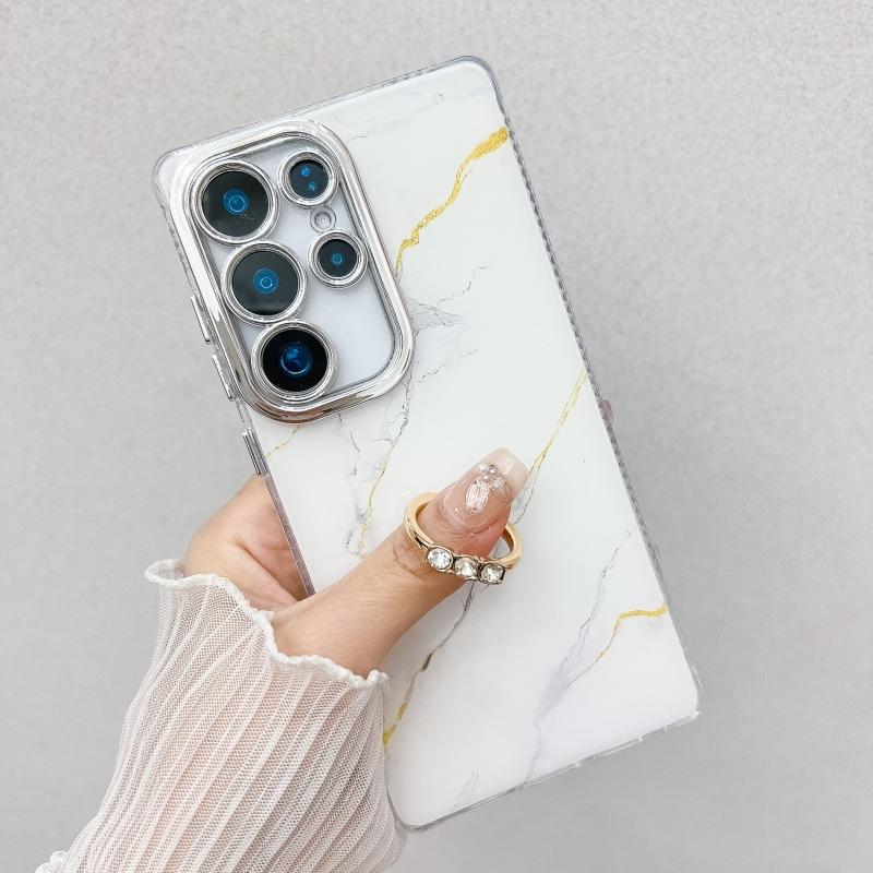 Suitable for Samsung S25ultra Mobile Phone Case Marble S23 Electroplated Fine Hole Full Package Anti Fall A56 Ring Support