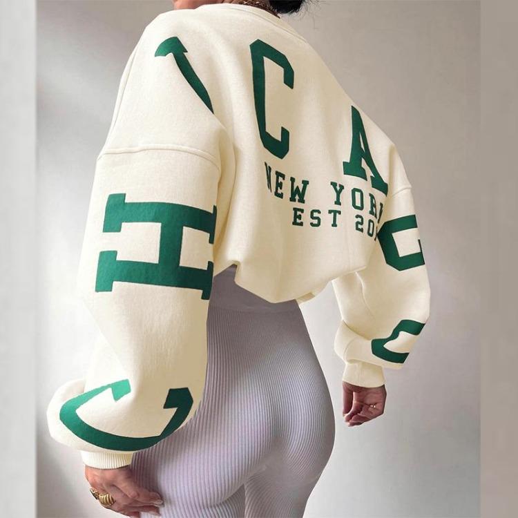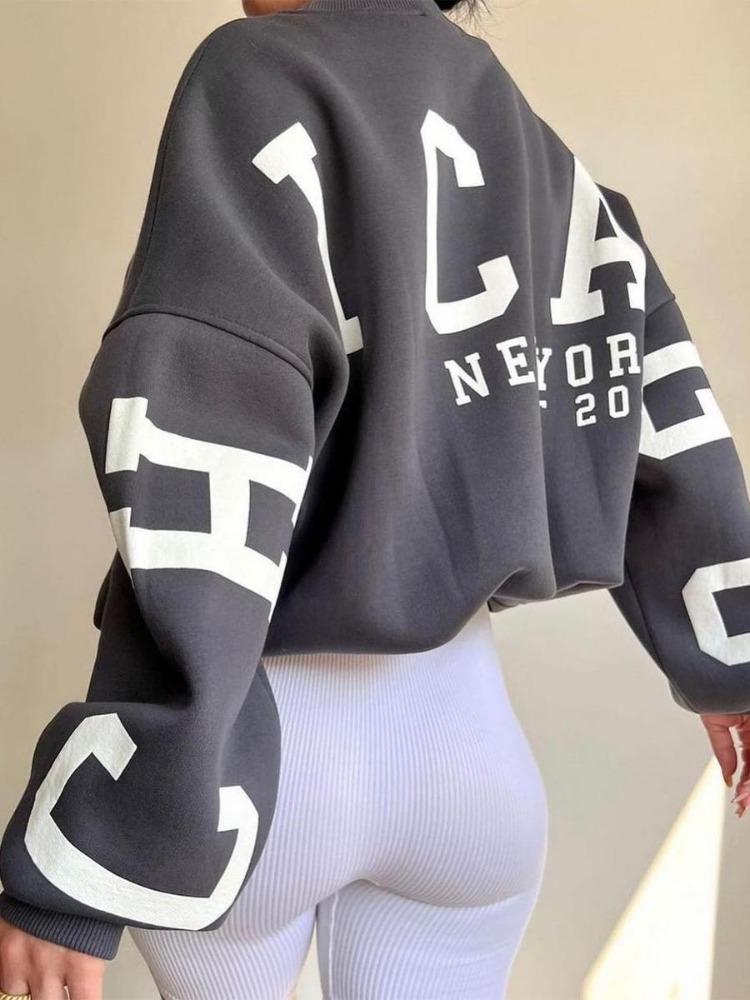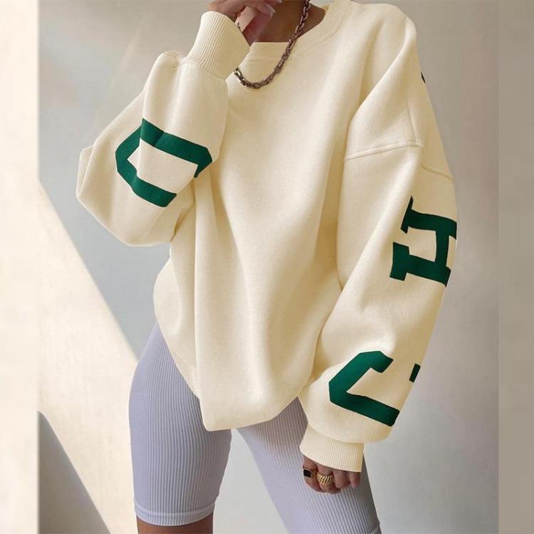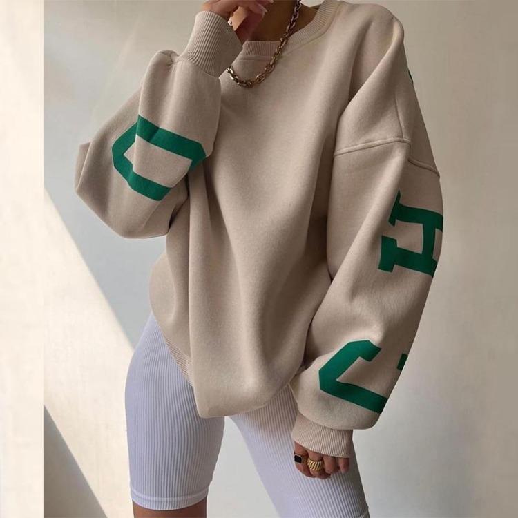 Женский повседневный свитшот с принтом, стильный свободный толстый топ с длинным рукавом