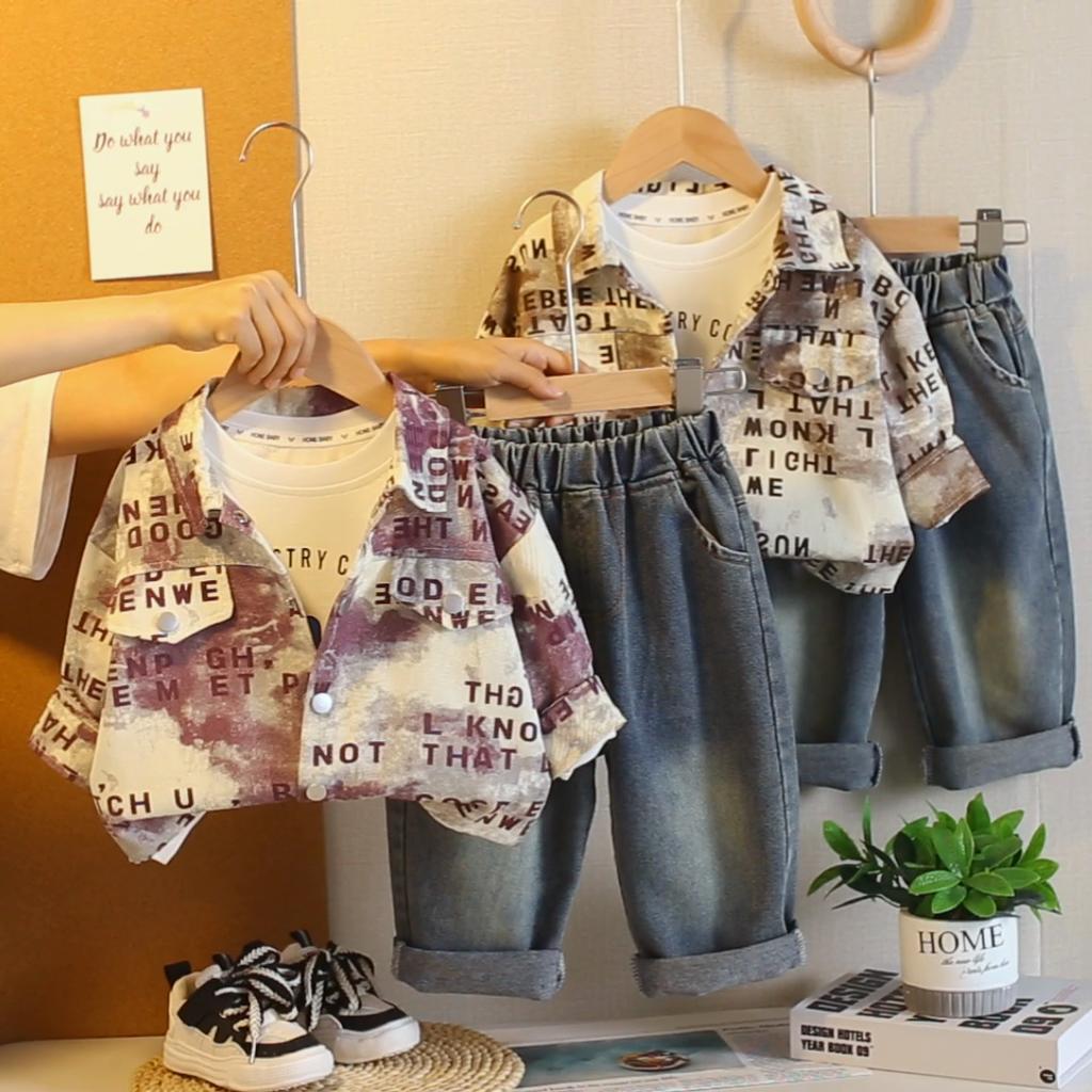 Комплект-тройка с длинным рукавом для мальчиков, Детский комплект с рубашкой-курткой с полной буквенной печатью, 0-5 лет, Детский повседневный комплект — купить товар онлайн с бесплатной доставкой по всему миру!