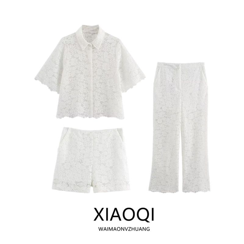 Fashion Style 2024 Summer New Arrival Women's Stylish Elegant Lace Short Tops High Waist Ankle Pants 3254490