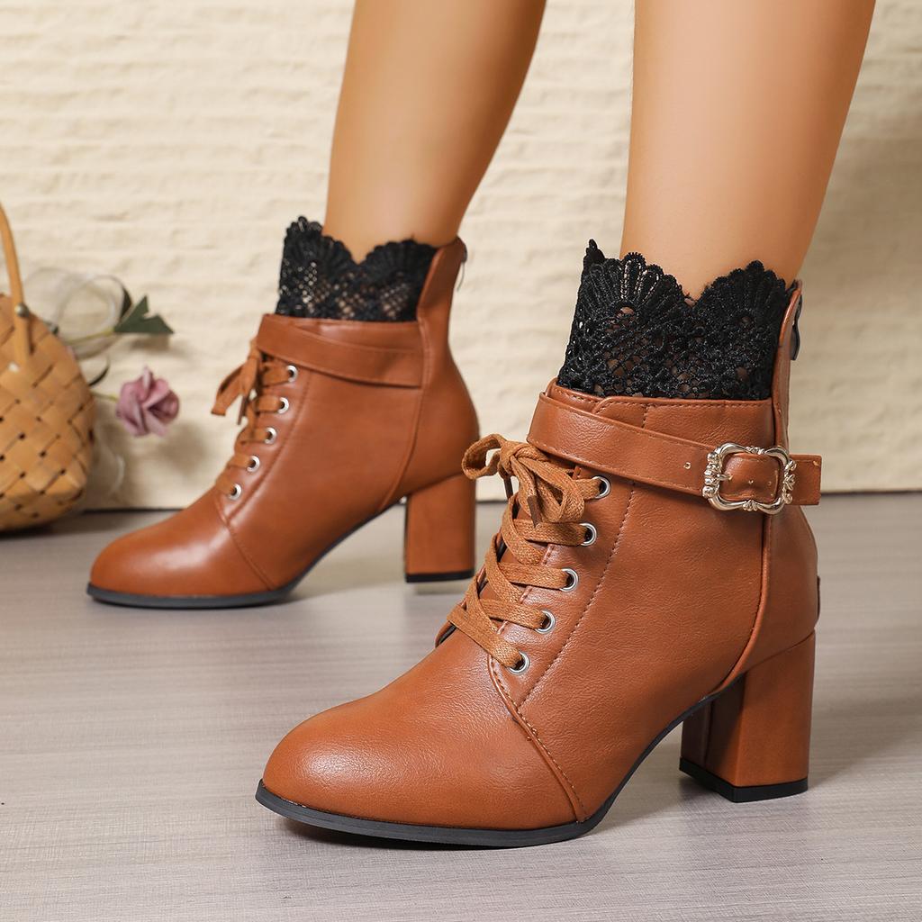 Женские ботинки Мартина больших размеров, ботильоны на платформе с массивным каблуком и кружевной отделкой, водонепроницаемые модные ботинки на осень-зиму