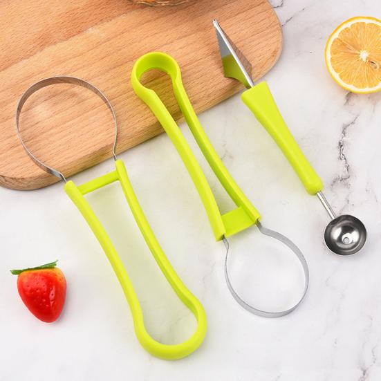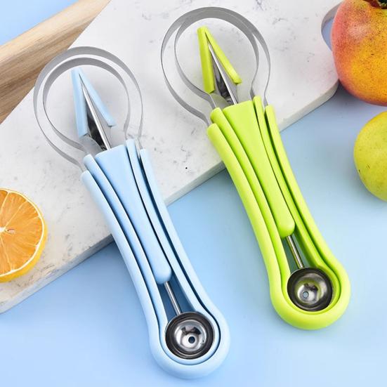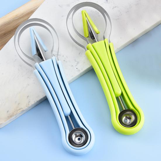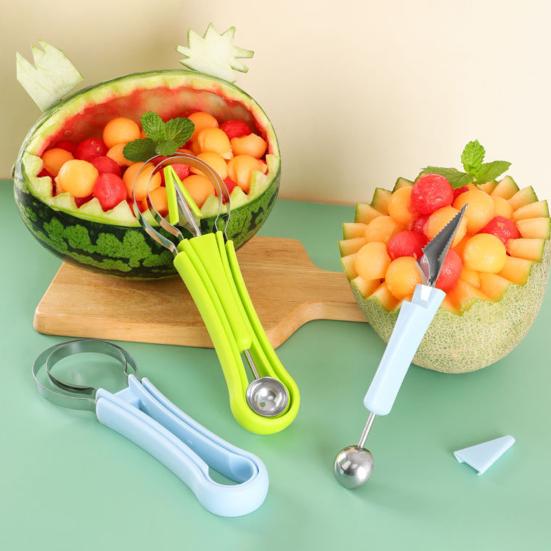 Набор фруктовых инструментов 4 в 1: Уникальный набор включает в себя ложку для дынных шариков, резак и две ложки для арбуза для универсального приготовления фруктов.; комплексное решение для эффективной формовки и подачи фруктов.