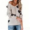 Женский осенне-зимний пуловер с длинным рукавом и V-образным вырезом, свободный вязаный свитер с сердечком, трикотажный топ
