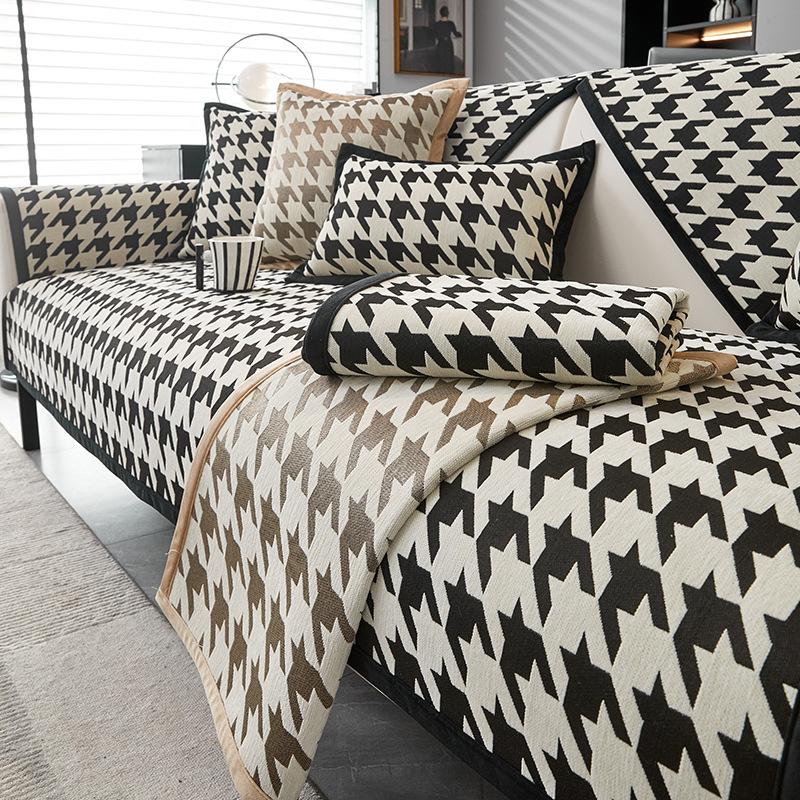 Подушка для дивана в скандинавском стиле с рисунком «гусиные лапки» Высококачественная нескользящая грязеотталкивающая подушка Полотенце для спинки Универсальная пыленепроницаемая ткань Four Seasons для дивана