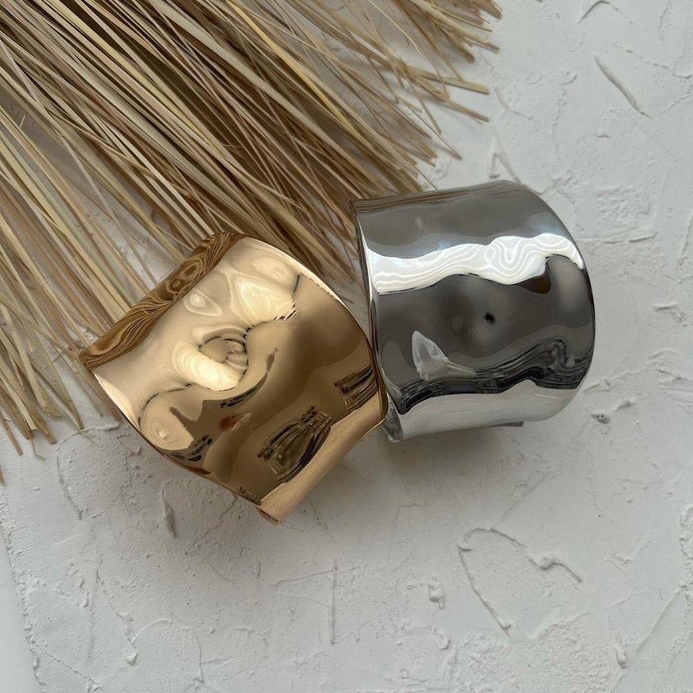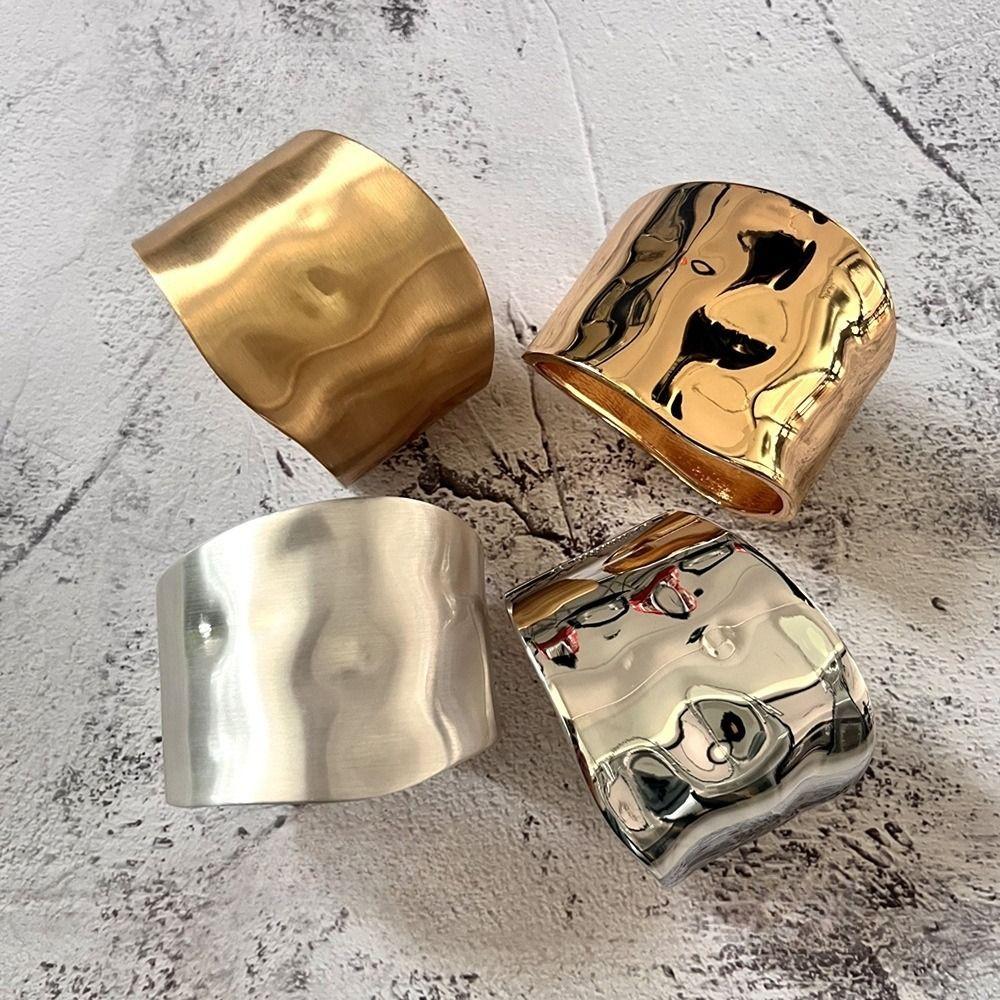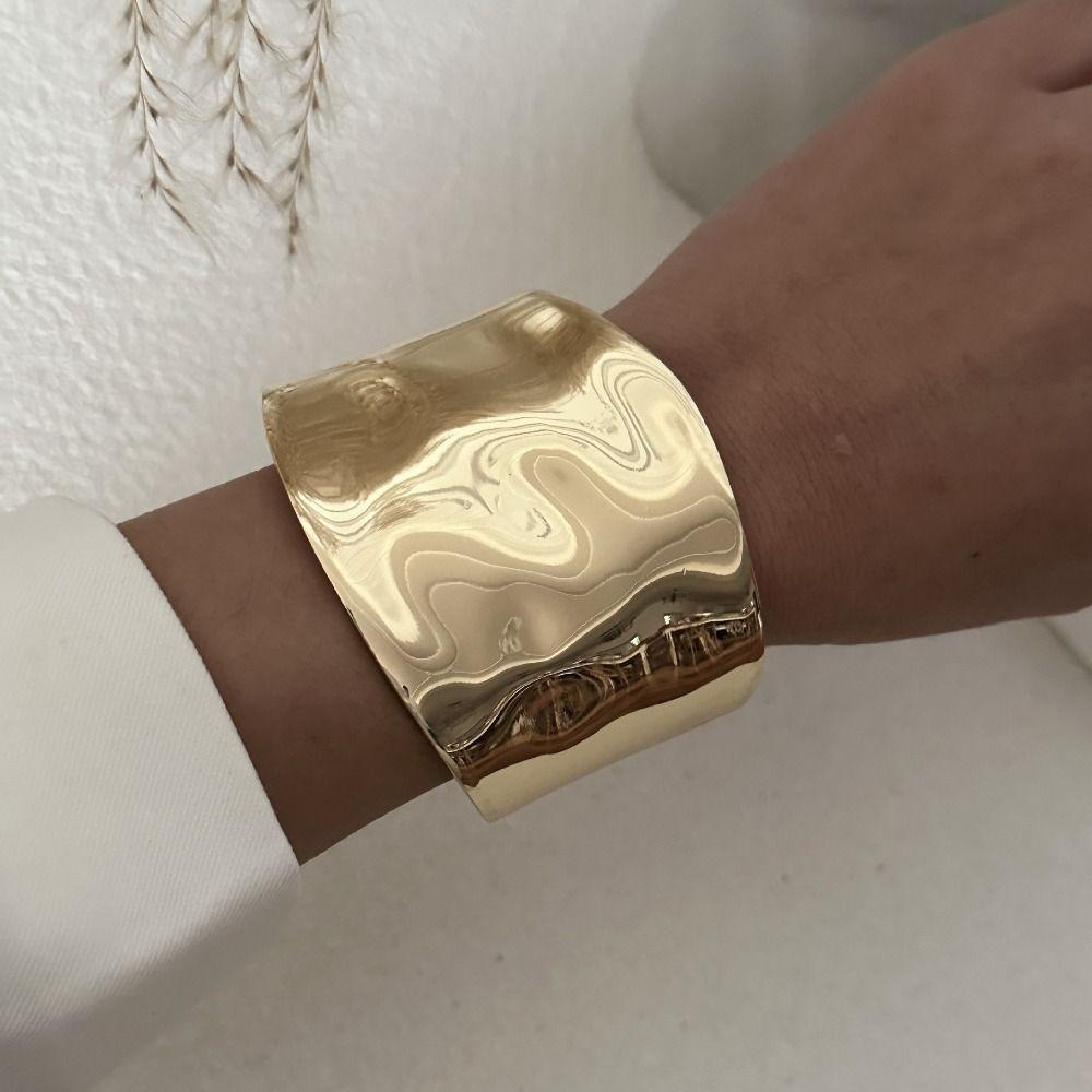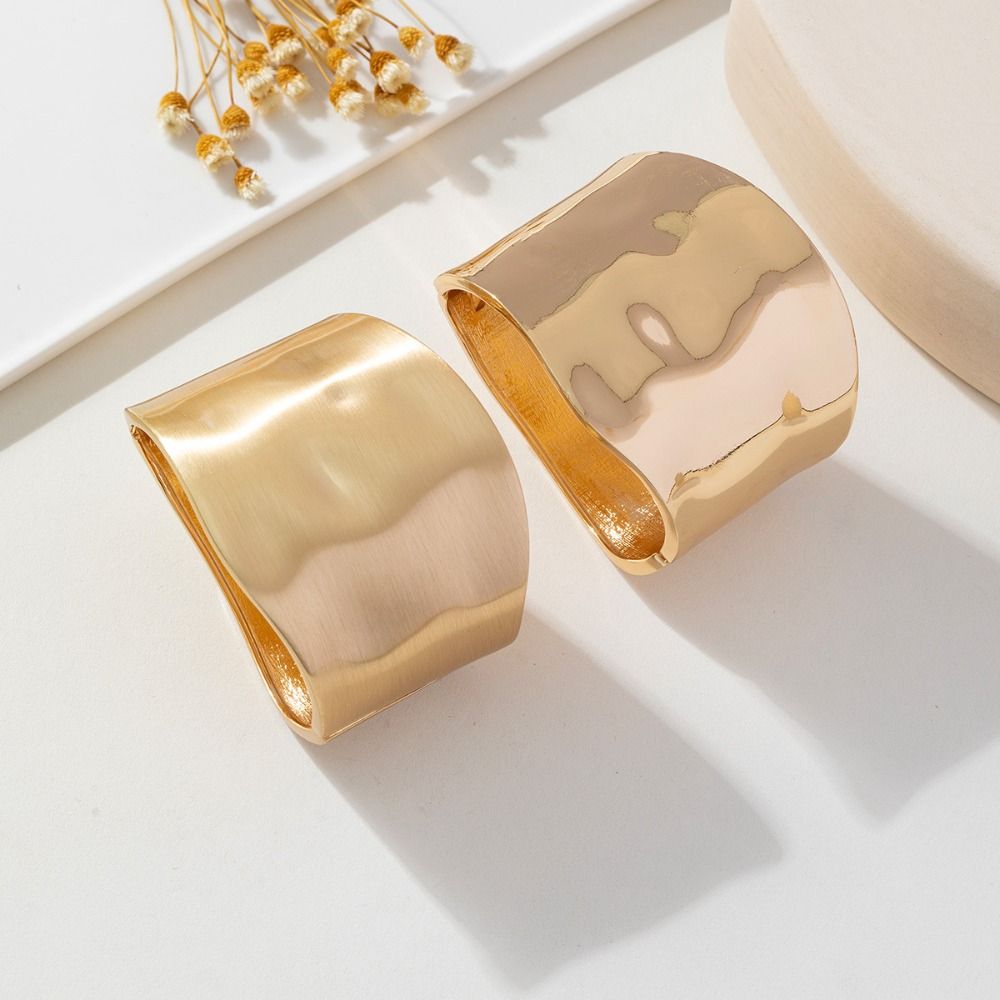 Матовый Преувеличенный Браслет Текстурированный Широкий Боковой Браслет Ретро Простой Металлический Браслет Вечеринка
